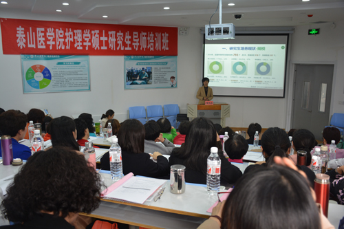此次培训由研究生处主办,护理学院承办。来自护理学院、直属附院、泰安市中心医院、中国人民解放军第八十八医院、山东省千佛山医院、泰安市肿瘤防治院、聊城市人民医院、菏泽市立医院、山东省精神卫生中心、莱芜市人民医院等50余名导师参加了培训。通过培训,提高了我校护理学研究生导师的教学科研能力,同时搭建了各研究生教学基地和学院导师相互学习、相互交流的平台,为今后的研究生培养工作打下了坚实的基础。444泰山医学院