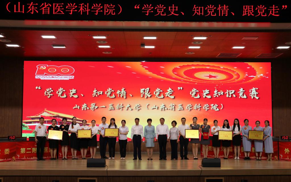 医疗保障学院、药学院、基础医学院、附属青岛眼科医院、附属肿瘤医院、药学与制药科学学院、化学与制药工程学院、附属内分泌与代谢病医院、第一附属医院、护理学院、附属省立医院、山东省职业卫生与职业病防治研究院、第三附属医院、附属皮肤病医院、山东省寄生虫病防治研究所15支代表队获得党史知识竞赛优秀组织奖。