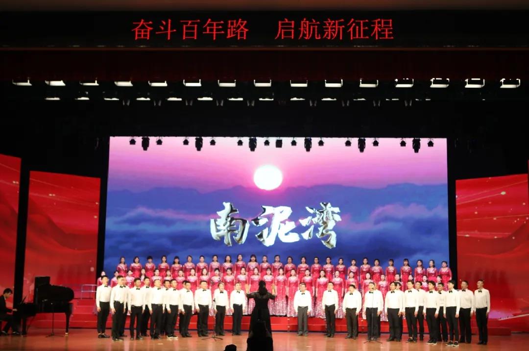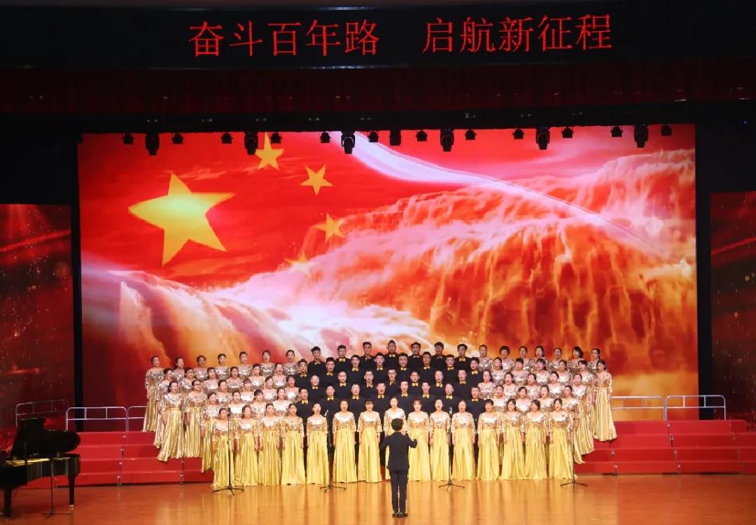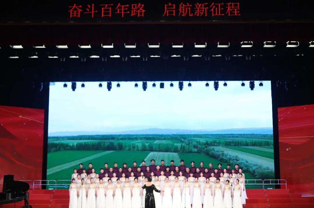 歌咏比赛结束后,校(院)领导、各合唱团代表与全场观众一同挥舞国旗、齐声高唱《没有共产党就没有新中国》,向伟大的中国共产党献上最诚挚的祝福。活动在热烈、欢庆、团结的氛围中圆满结束。