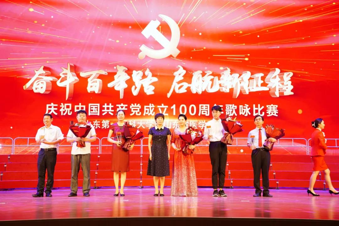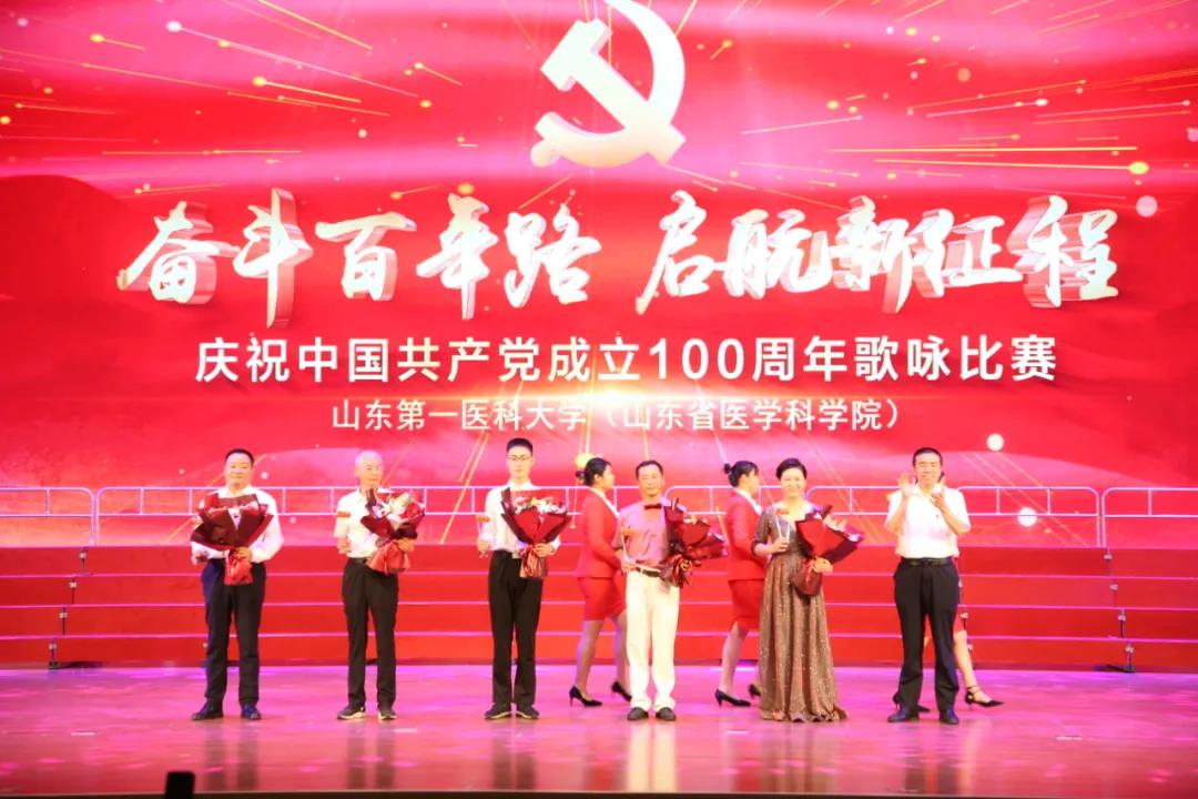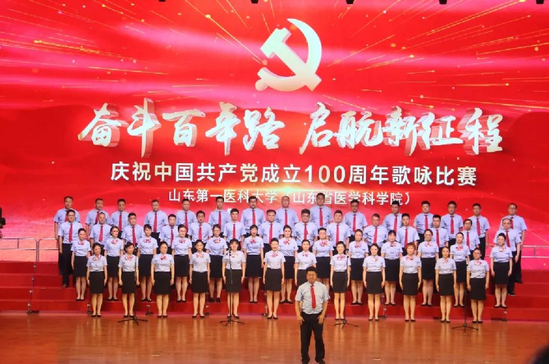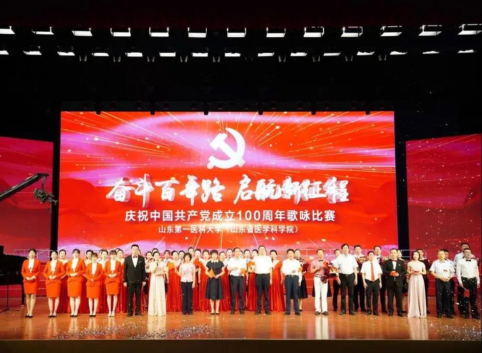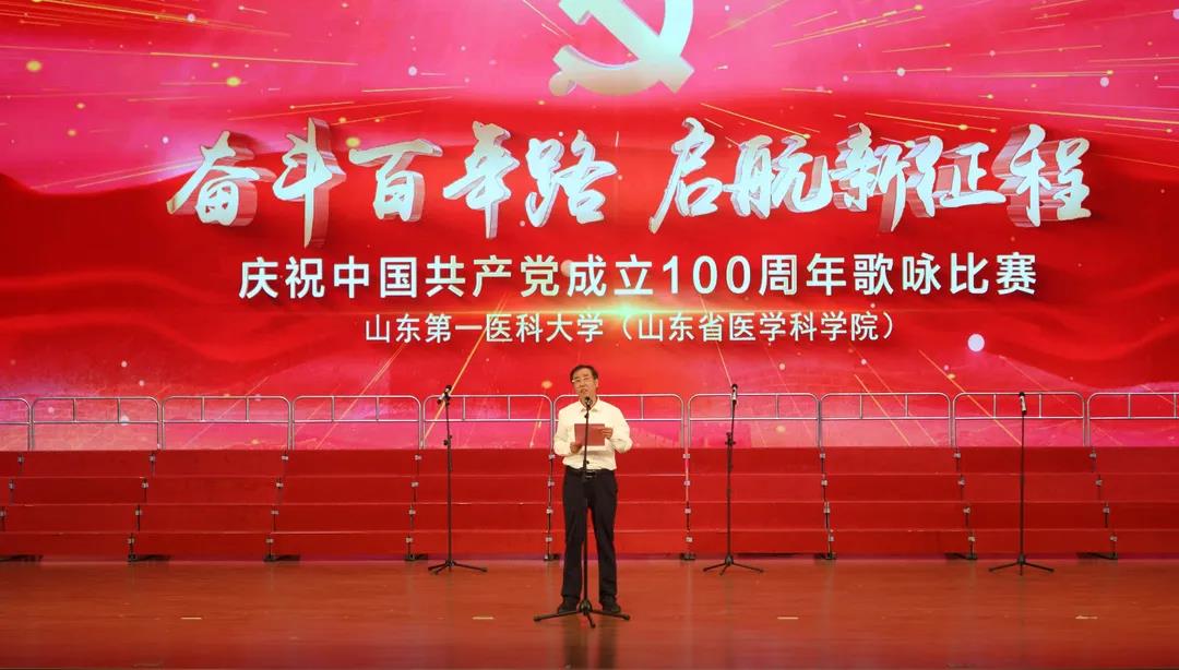 奋斗百年路,启航新征程。6月27日,山东第一医科大学(山东省医学科学院)庆祝中国共产党成立100周年歌咏比赛在济南主校区大学生活动中心隆重举行,来自校(院)各单位、各部门,各教学、附属机构的25支代表队2000多名参演职工同台演出,用歌声向党的百年华诞献礼。校(院)党委常务副书记韩金祥出席活动并致辞;校(院)党委委员、副校(院)长彭春雷、徐淑凤、姚庆强、吕晓黎出席。