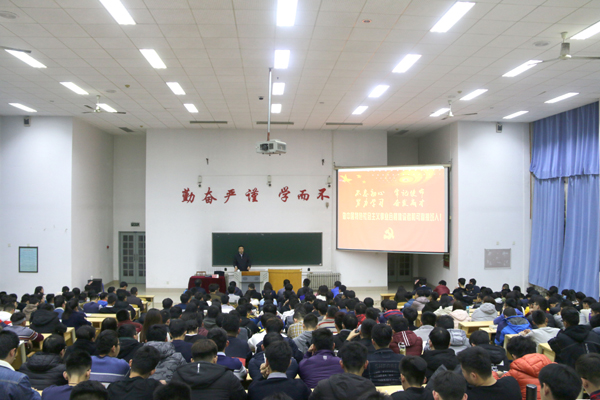 为帮助大学生学懂弄通党的十九大报告精神,用习近平新时代中国特色社会主义思想武装学生头脑,11月23日晚,山东高校十九大精神宣讲团成员、学校十九大精神宣讲团团长、副院长彭春雷为全校主要学生干部作十九大精神宣讲辅导报告。部分教师代表、全校各班级主要学生干部、校学生会和各二级学院学生会干部、大学生社团联合会及青年志愿者服务总队负责人共计四百多人聆听报告会。