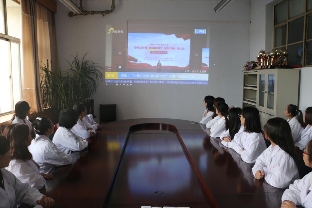 9月27日下午,按照省妇联通知要求,学校组织师生观看“巾帼心向党 建功新时代”齐鲁巾帼宣讲活动直播。副院长徐淑凤和妇委会各分会主任、女工委委员、女教职工代表在学校主会场一同收看了开幕式盛况;学校师生分别在第二临床医学院、护理学院、药学院等分会场集中收看了直播。