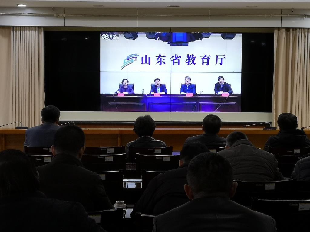 1月25日,2019年全省教育工作视频会议在济南召开,学校领导彭春雷、徐淑凤、刘太来、姜振家以及各部门单位主要负责同志在学校第三会议室集体收听收看了此次视频会议。会议以习近平新时代中国特色社会主义思想为指导,深入学习贯彻习近平总书记关于教育工作的重要论述和全国教育大会精神,传达学习了全国高校党建工作会议和全国、全省教育工作会议精神,总结2018年全省教育工作,研究部署2019年工作任务。