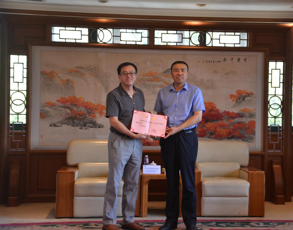 9月1日,澳大利亚塔斯马尼亚大学丁长海教授来我校交流访问,副院长彭春雷、徐淑凤热情会见了客人。彭春雷向丁长海教授介绍了学校的办学历史、专业设置、学科建设、研究生教育等情况,并为其颁发了兼职教授聘书。