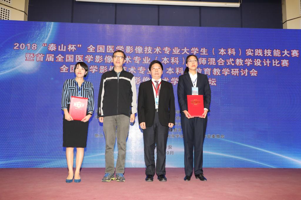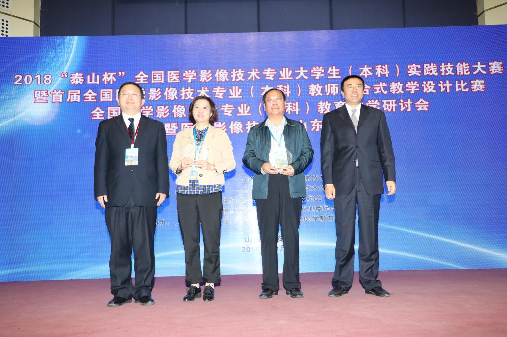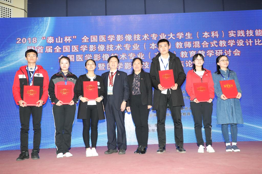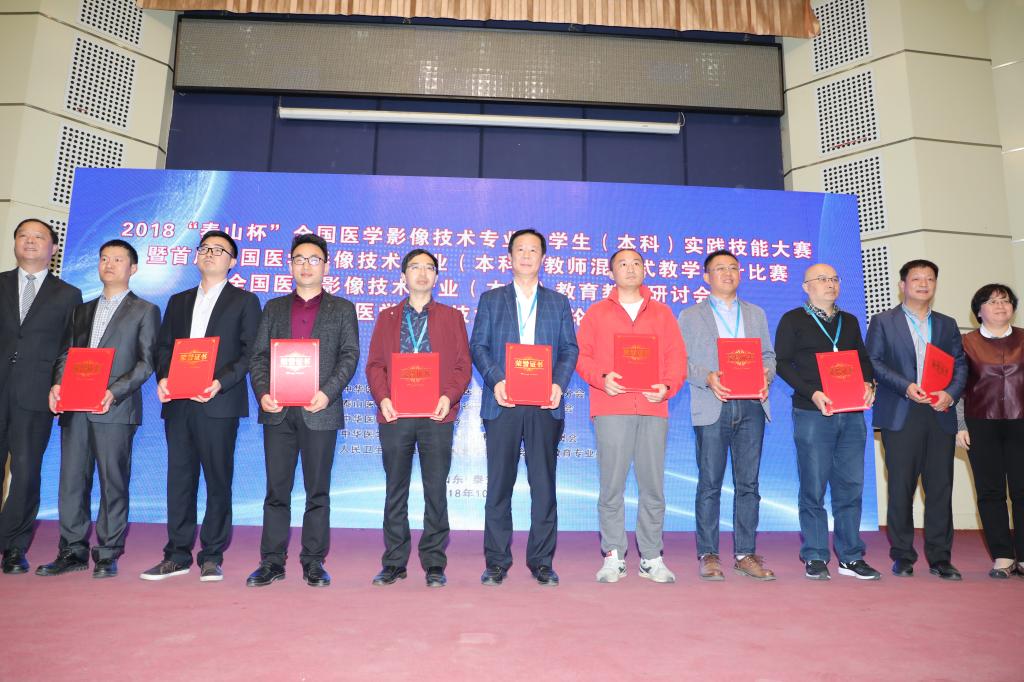 为聚焦本科教育“两个根本”,推进本科教育“回归常识,回归本分”,提升高等院校医学影像技术专业实践教学水平,激励广大教师提升专业技能,促进院校间交流合作,10月12至14日,由中华医学会、中华医学会影像技术学分会主办,泰山医学院、山东省医学会放射技术分会承办,人民卫生出版社、中国高等教育学会医学教育专委会协办的2018“泰山杯”医学影像技术专业大学生(本科)实践技能大赛暨首届医学影像技术专业(本科)教师混合式教学设计比赛,医学影像技术专业(本科)教育教学研讨会暨医学影像技术山东论坛在我校举办。
