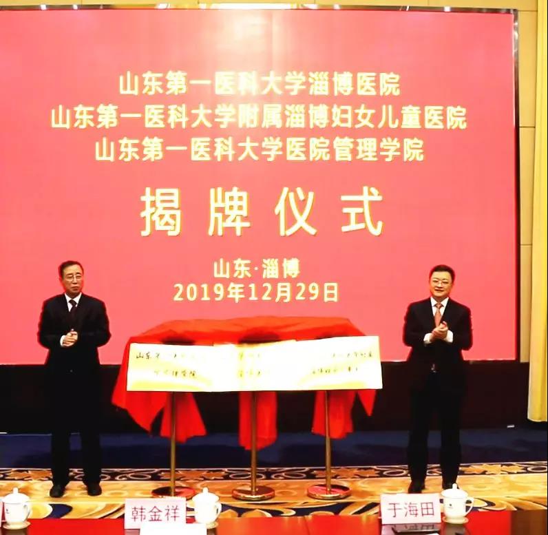 韩金祥与于海田共同为淄博医院、附属淄博妇女儿童医院、医院管理学院揭牌