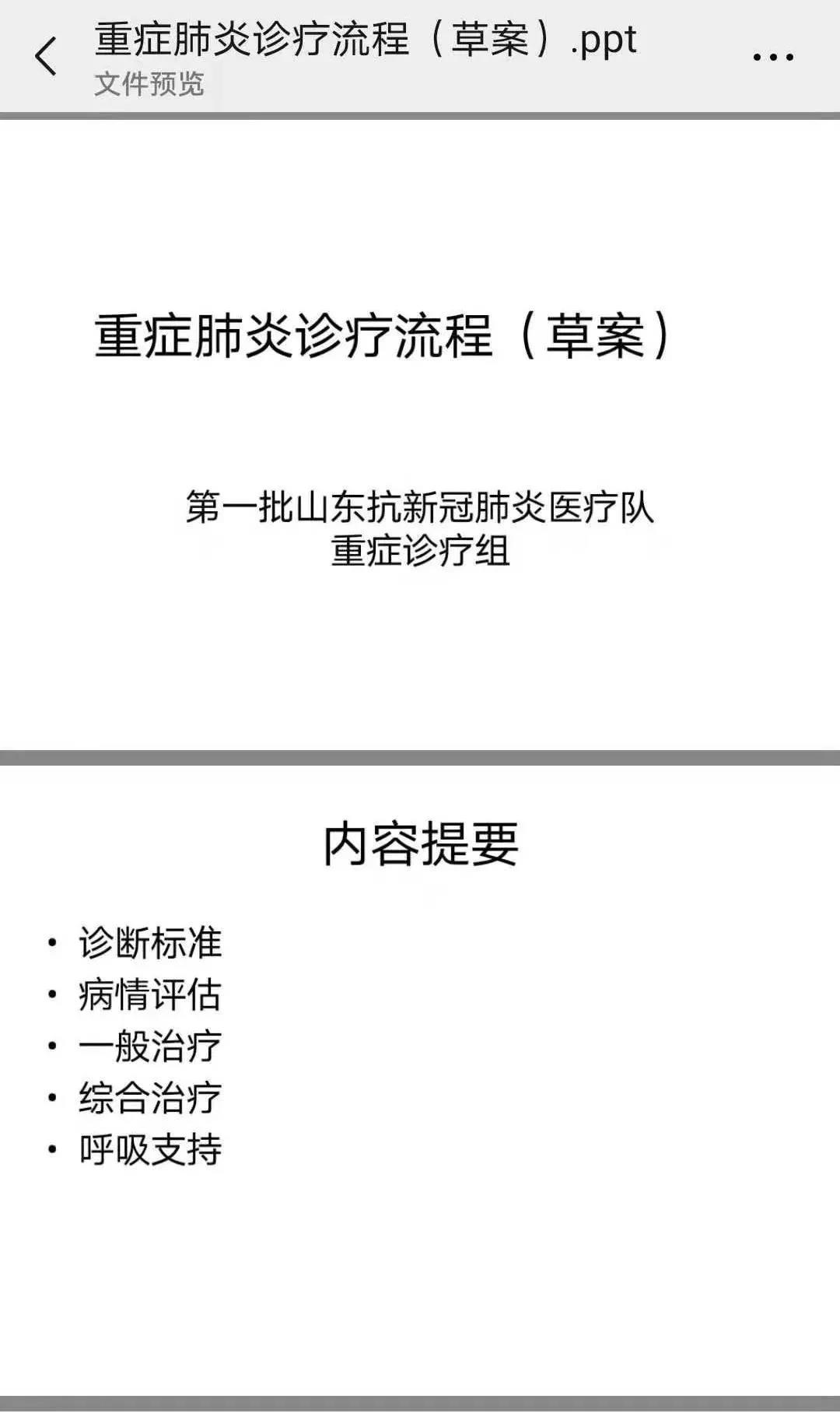 山东第一医科大学第二附属医院重症医学科副主任岳茂奎担任重症诊疗组第四组组长,按照医疗队统一安排,负责起草诊疗方案。面对此次疫情的特点,他认真总结临床经验,反复查阅参考文献,在最短时间内制定出了针对性、实用性强的方案,为高效开展重症诊疗提供了科学依据和规范路径,受到同行的高度肯定。