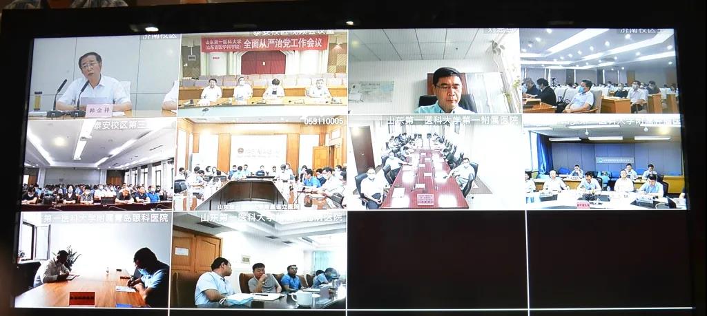 会议采取视频形式召开,在济南校区和泰安校区设主会场,附属省立医院、第一附属医院、附属肿瘤医院、附属青岛眼科医院、附属消化病医院(济宁)设分会场。各单位、各部门处级及以上党员领导干部参加会议,非中共党员领导干部列席会议,共约280人。