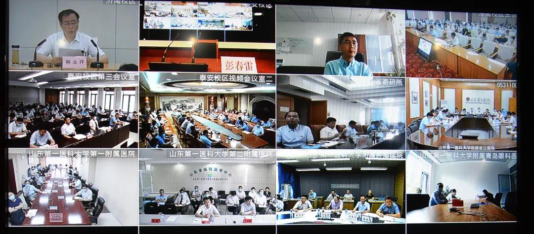 党课采取视频形式进行,在济南、泰安校区设主会场,省寄研所(济宁)、附属省立医院、第一附属医院、第二附属医院、附属肿瘤医院、附属青岛眼科医院设分会场。校(院)处级党员领导干部、基层党支部书记代表聆听了党课,非中共党员处级及以上领导干部列席会议。