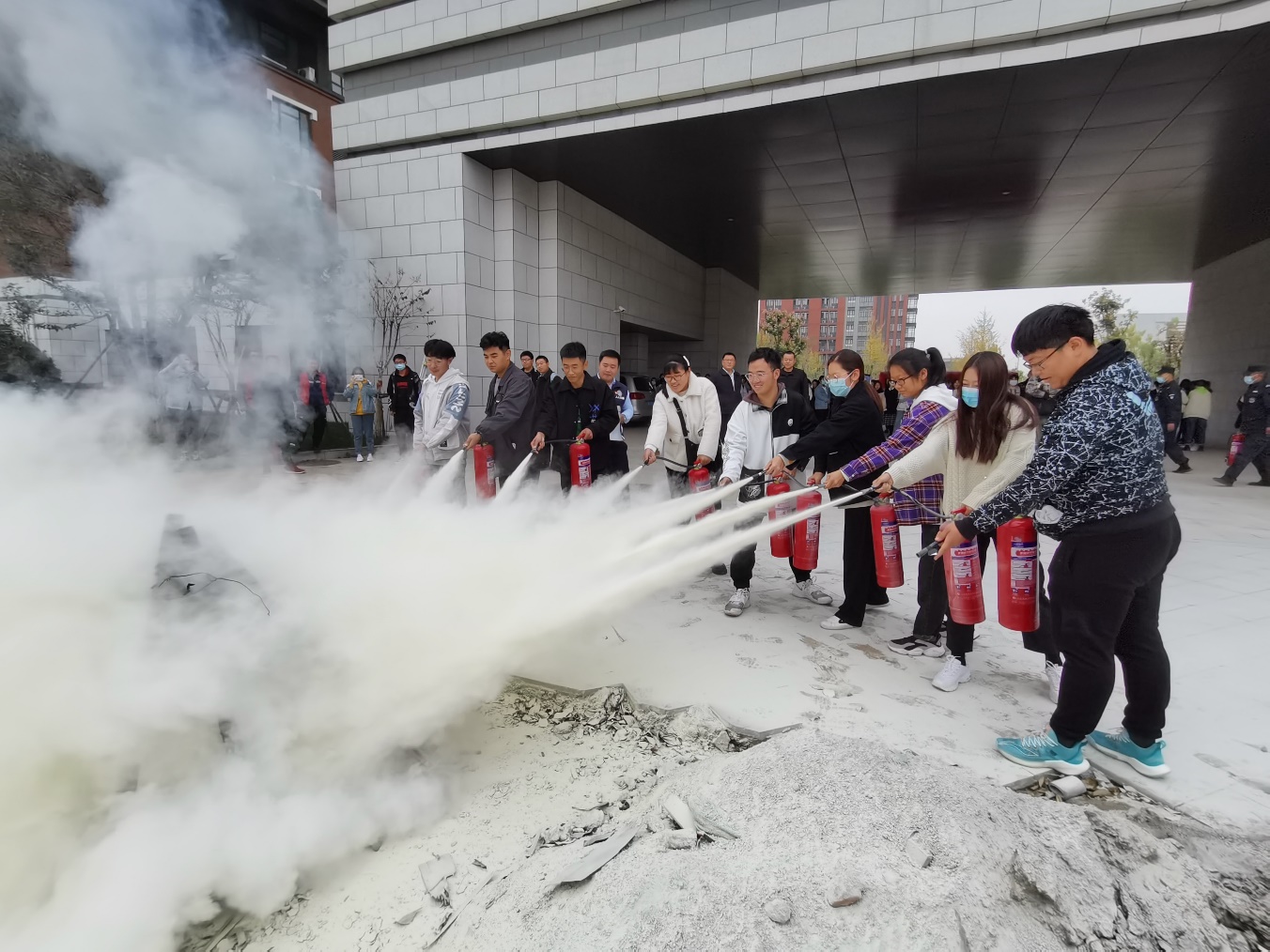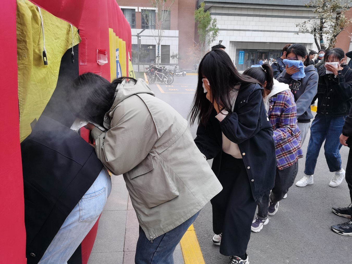 2020级新生、学生辅导员、公寓管理员、教室管理员、饮食服务中心管理人员,中航物业、振邦安保公司相关人员等近6000人参加演练活动。