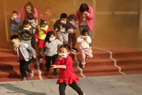 在消防知识培训和消防综合演练现场,随着指挥员一声“消防综合演练活动开始”的号令,几十盆大火熊熊燃起,2020级新生、物业人员、公寓管理人员等展开初起火灾扑救演练,跟随指挥员摆动旗帜,参演人员按照“拔销子、握管子、压把子”的操作要领,站在上风方向,沉着冷静地扑灭火焰,实地、实情、有效地掌握灭火的基本动作要领和灭火方法,收效良好。参演人员严肃认真,积极参与,掌握了初起火灾扑救和疏散逃生基本技能,达到了预期目的。此外,泰安长城路校区幼儿园也举行了消防演练活动。