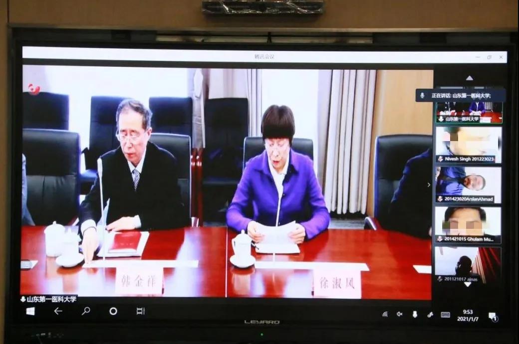 1月7日,校(院)2020届留学生秋季“云端”毕业典礼在济南主校区举行。校(院)党委委员、常务副书记韩金祥出席典礼并致辞,校(院)党委委员、副校(院)长徐淑凤主持。
