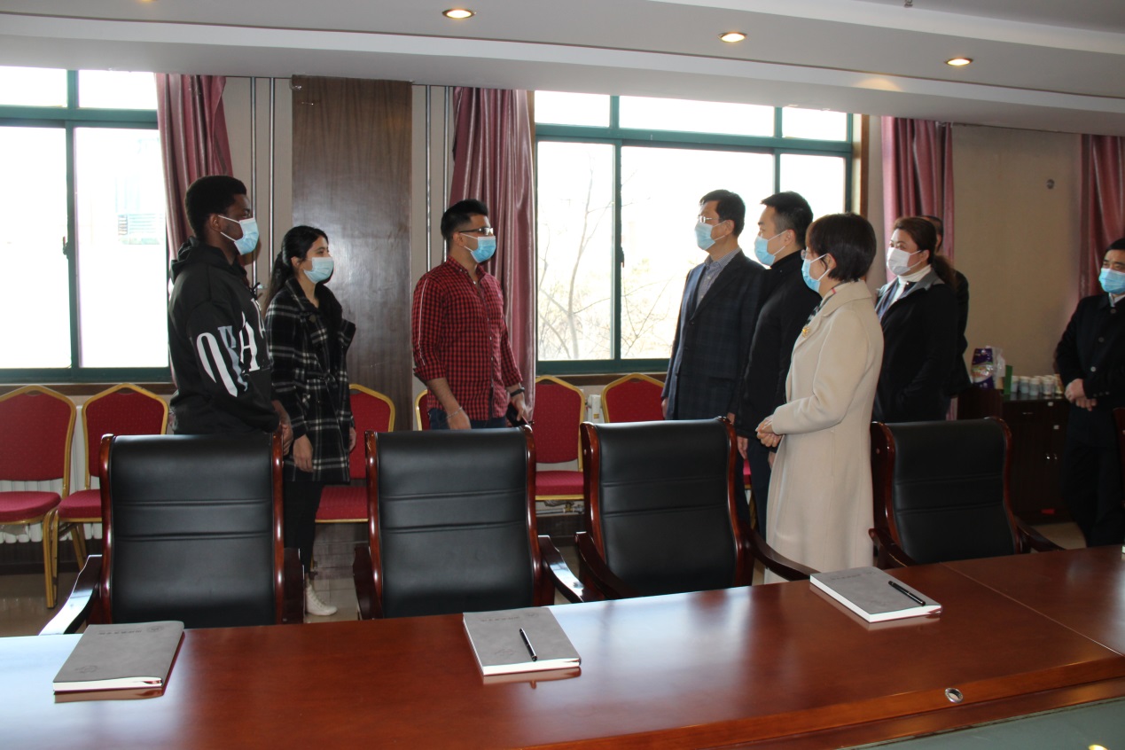 随后,督导组实地查看了留学生公寓、发热隔离室、国际教育学院校史馆,与留学生进行随访。来自巴基斯坦的Moin表示,在校学习生活,有满满的安全感,中国为抗击疫情做的工作大家有目共睹,很庆幸能够见证中国抗疫的胜利。