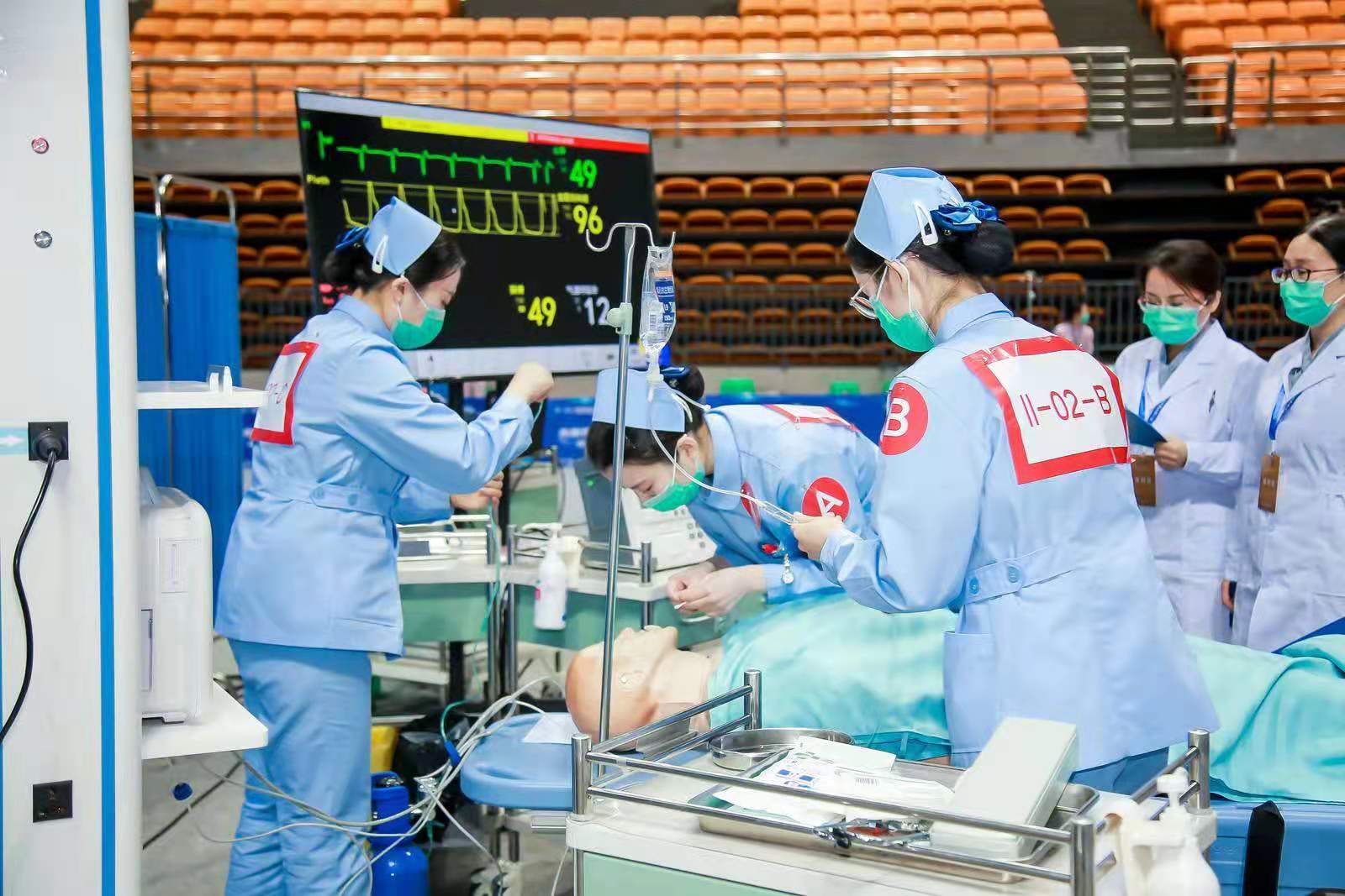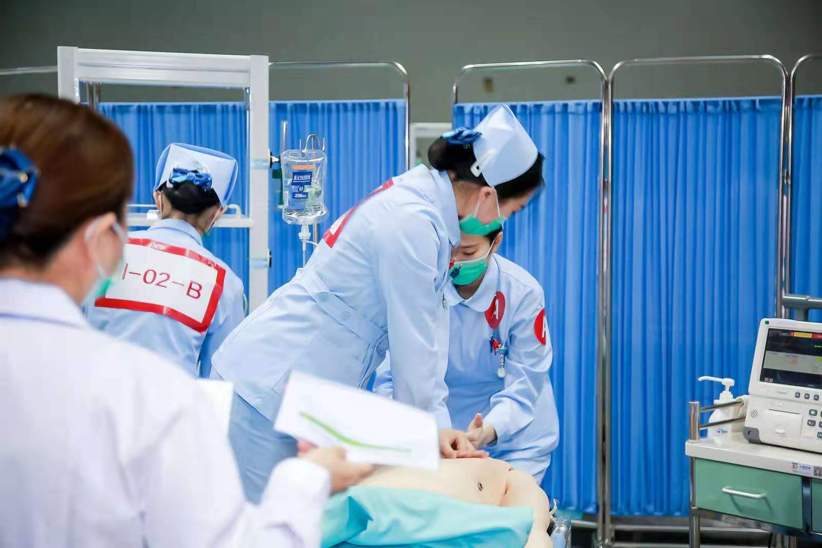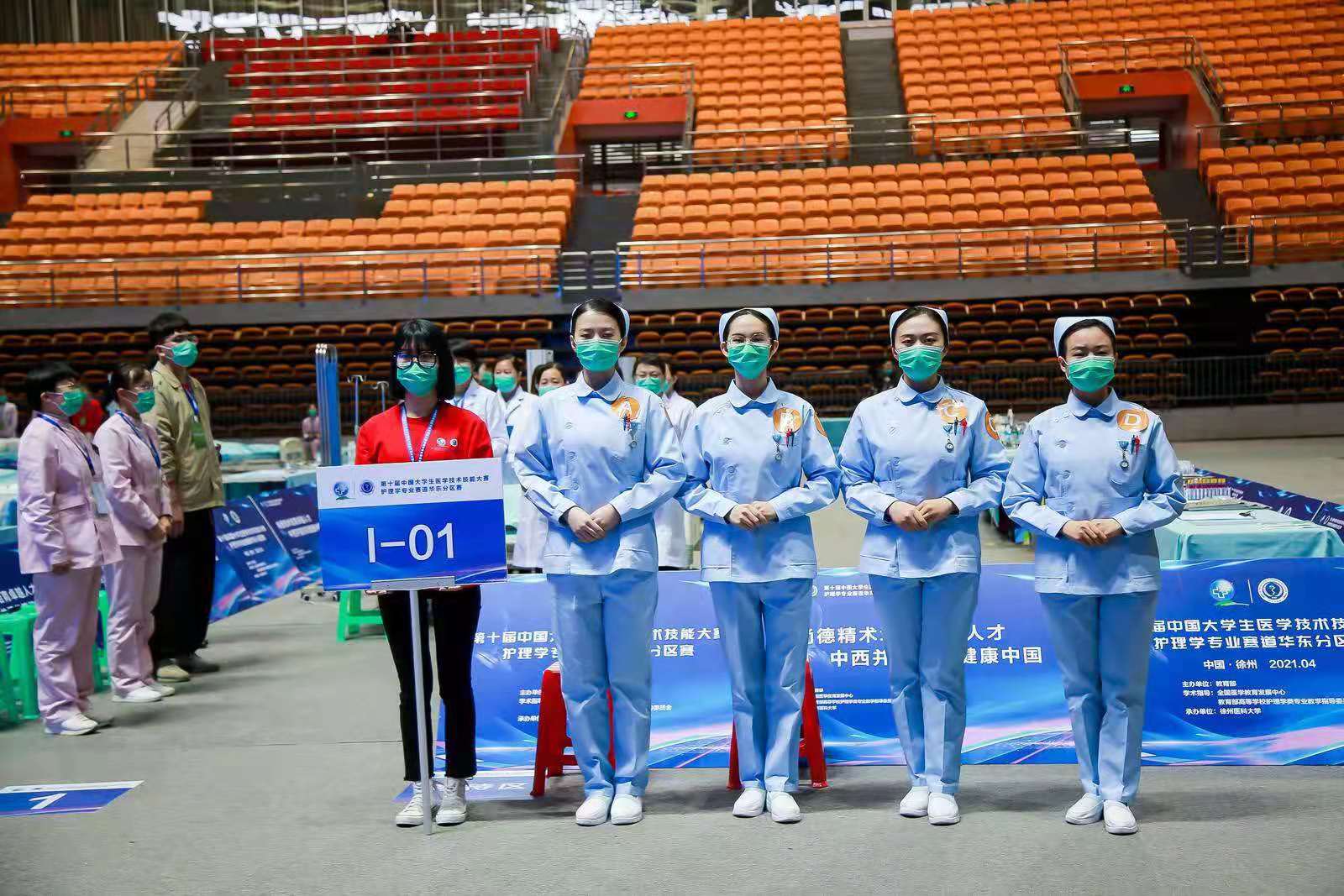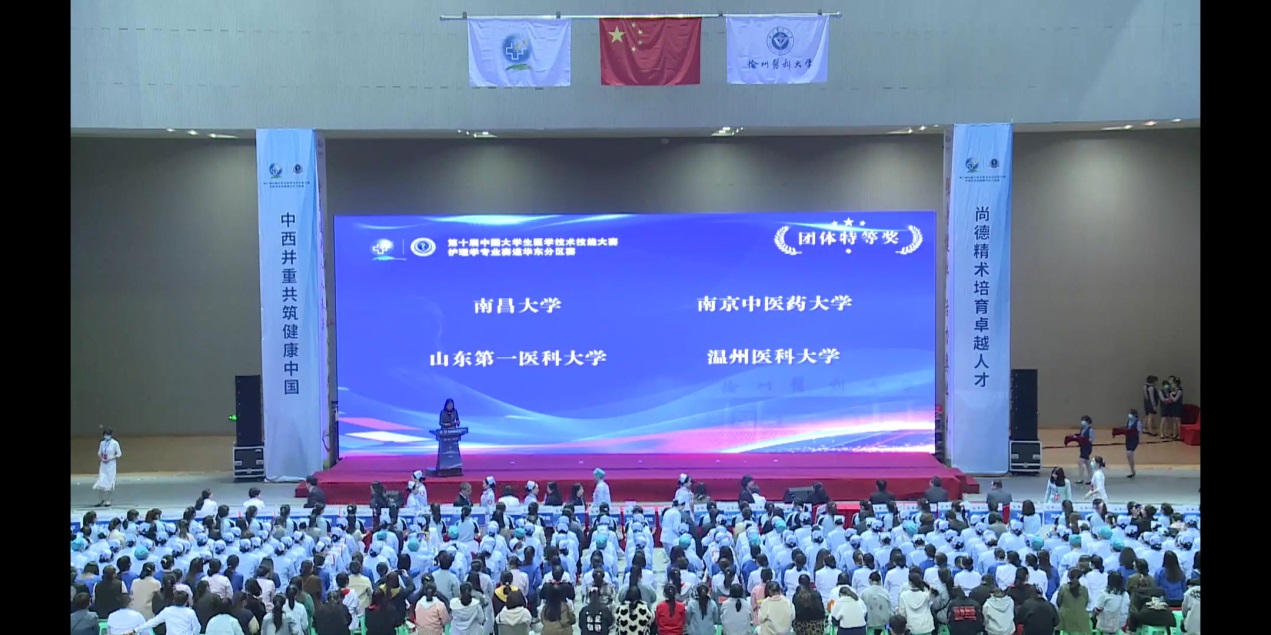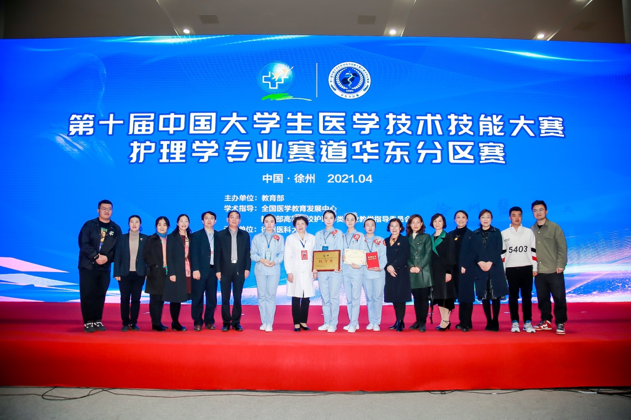 中国大学生医学技术技能大赛,是独具中国特色的高端医学教育赛事,自2010年以来,已走过十年风雨,堪称医学生的“奥林匹克”。本次大赛的主题为:“尚德精术培育卓越人才中西并重共筑健康中国”。大赛于今年首次增设护理类专业赛道,其华东分区赛由徐州医科大学承办,参赛队伍分别来自上海市、浙江省、江苏省、山东省、安徽省、江西省、福建省等62所高校,由毕业实习阶段的护理本科生组队参赛。大赛初赛为多站式,按人的生命周期,从第一站到第8站排列,考核范围涵盖基础护理学、急危重症护理学、内科护理学、外科护理学、妇产科护理学、儿科护理学、健康评估、老年护理学、社区护理学等。通过初赛32支队伍晋级复赛,复赛采用“赛道式”考核,以临床案例和场景为轴,重点考察学生解决复杂问题的能力和临床思维能力,通过复赛12支队伍晋级决赛。护理专业赛道华东分区赛设立特等奖4个、一等奖8个、二等奖19个、三等奖32个。