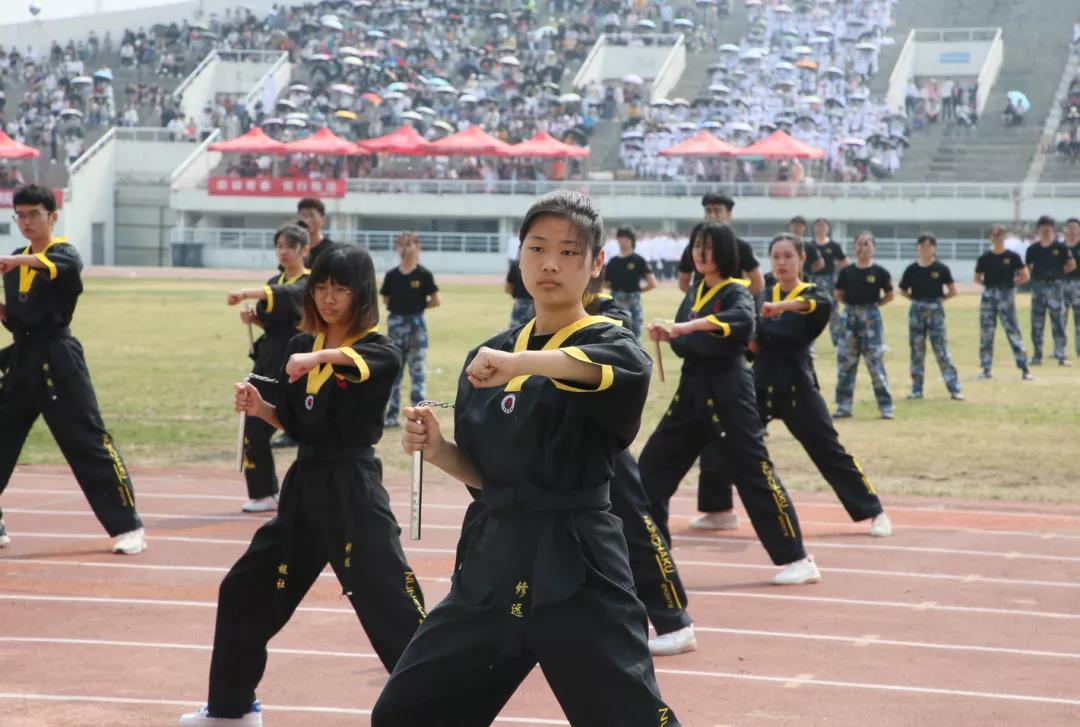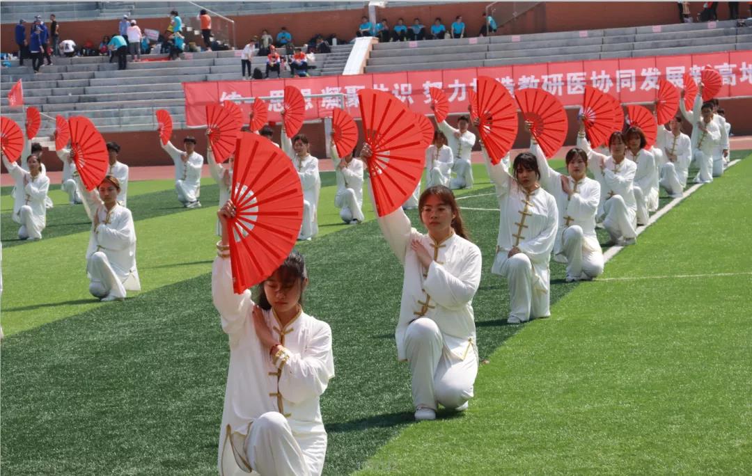 大型团体操表演成为本届运动会的亮点。由通识教育部老师精心编排的500名学生团体操方队在明媚阳光下,气势恢宏,跟随着激昂的音乐变换队形,摆出“党徽”“1921-2021”“100”的造型,献礼建党100周年;80余名教职员工带来的舞蹈《鲜红的太阳永不落》,以舞诉史、以舞寄情,传承红色基因,用娴熟的舞姿向党和国家献礼;武术操方阵的一招一式,蕴藏着英雄气魄,彰显了新时代青年意气,表达了山一大学子永不服输的决心与拼搏的追求;健美操、啦啦操、军体拳、太极拳、双截棍等表演,慷慨激昂,威武大气,体现出山一大学子“人一我十,自强不息,不断超越,追求卓越”的体育精神……各类文体表演精彩纷呈、高潮迭起。这不仅是一场视觉盛宴,更是一节深入人心的思政课。