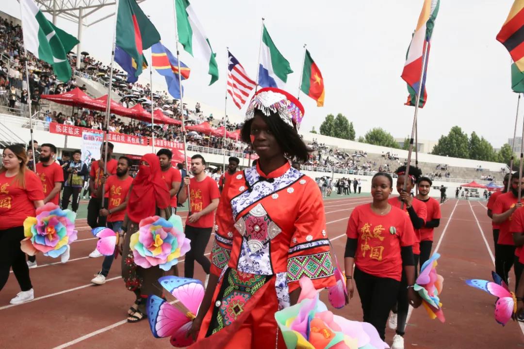 开幕式上一片欢腾。伴随着激昂的《运动员进行曲》,国旗护卫队、校旗队、仪仗队、各教职员工及学生代表队,排着整齐的队形,迈着矫健的步伐,喊着高亢嘹亮的口号依次入场,尽展山一大人的良好体育素养。