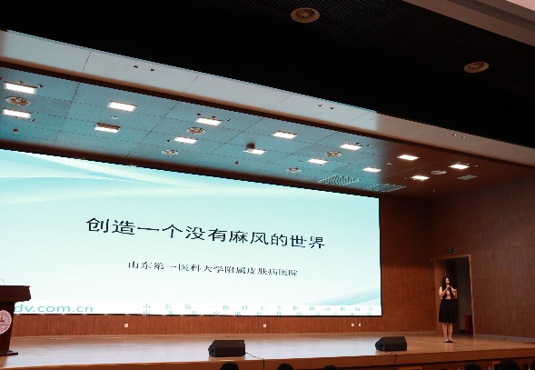 附属皮肤病医院的刘艺君以《创造一个没有麻风的世界》为题,与大家分享了以尤家骏、赵天恩、张福仁为代表的山一大麻风防治工作者初心不改、牢记使命,为“创造一个没有麻风的世界”贡献出的使命担当和中国力量。