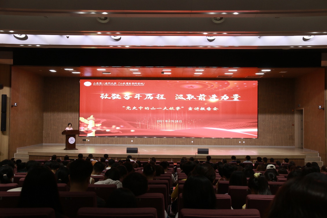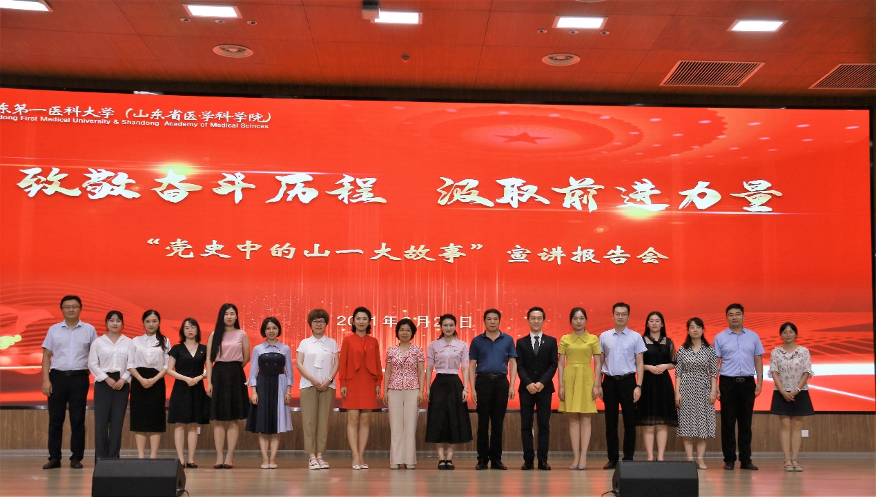致敬奋斗历程,汲取前进力量。6月28日,山东第一医科大学(山东省医学科学院)举办“党史中的山一大故事”首场宣讲报告会,讲述一代代山一大人奋斗历程和典型事迹,用山一大的光荣传统和优良作风坚定发展信念、砥砺优秀品格、凝聚前进力量。校(院)党委委员、副校(院)长吕晓黎出席活动并致辞。