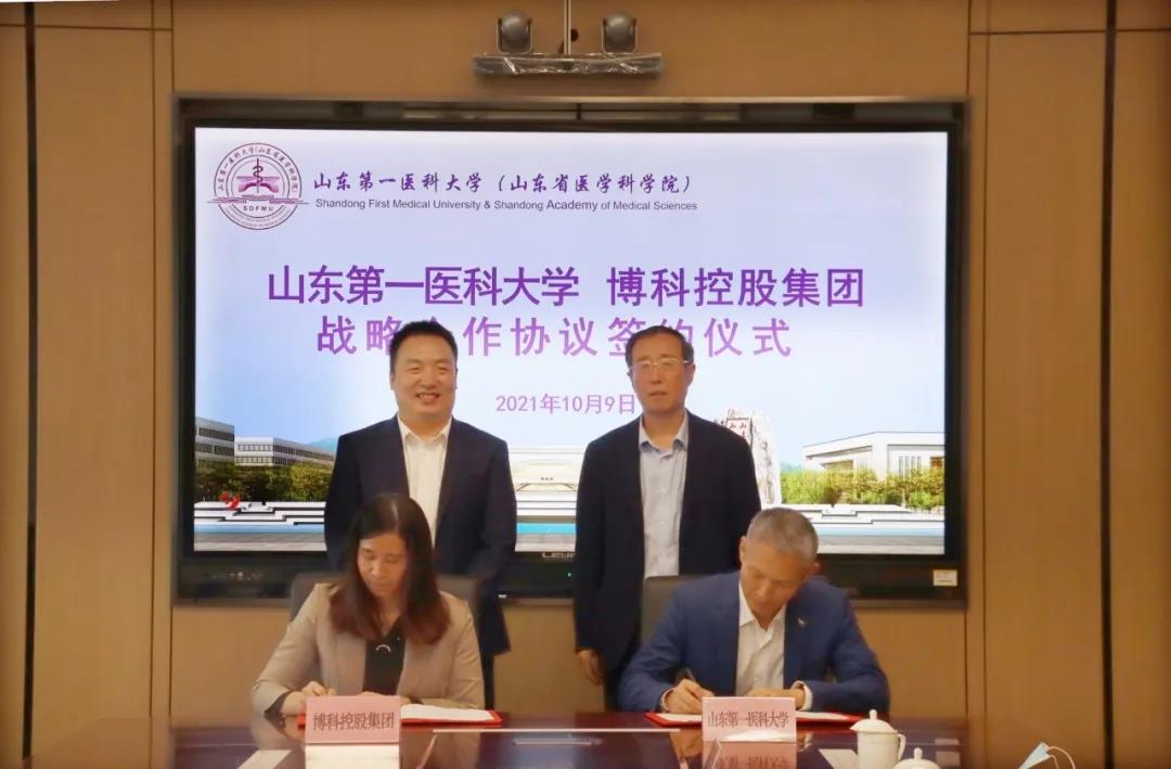 10月9日,山东第一医科大学(山东省医学科学院)与博科控股集团有限公司在济南主校区签署战略合作协议。校(院)党委书记韩金祥,博科控股集团有限公司董事长甘宜梧,校(院)党委委员、副校(院)长、基础医学院(基础医学研究所)常务副院长马鲁豫出席会议。