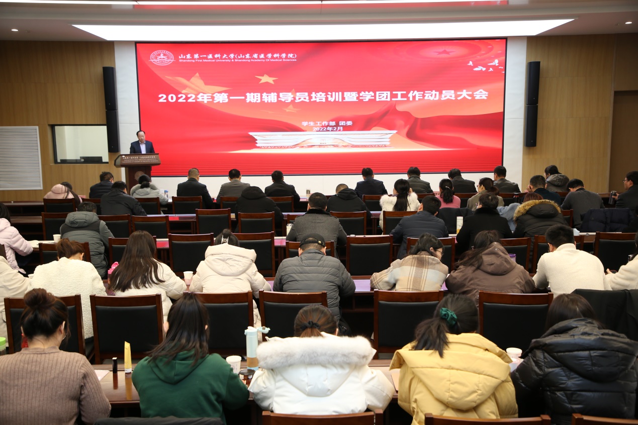 2月22日至24日,山东第一医科大学(山东省医学科学院)2022年第一期辅导员培训暨学团工作动员大会在济南主校区举行。校(院)党委委员、副校(院)长李栋出席活动并讲话,指出过去一年,在校(院)“三全育人”顶层设计之下,学团队伍坚持以学生为中心,注重培根铸魂育人,学团工作亮点频现、成效突出。2022年,学团工作要深入贯彻落实全省2022年工作动员大会精神,在实现风险防控创新、文化宣传创新和推进落实创新方面持续发力。进一步强化辅导员队伍建设,不断提升辅导员素质能力;扎根学团工作“一线”,切实提升育人质量和实效;大力倡树“严、真、细、实、快”工作作风,擦亮山一大学团工作品牌。以时不我待、只争朝夕的精神投入到2022年工作中,牢记使命、勇于担当、凝心聚力、实干笃行,为山一大建设发展贡献力量,以优异成绩迎接党的二十大胜利召开。