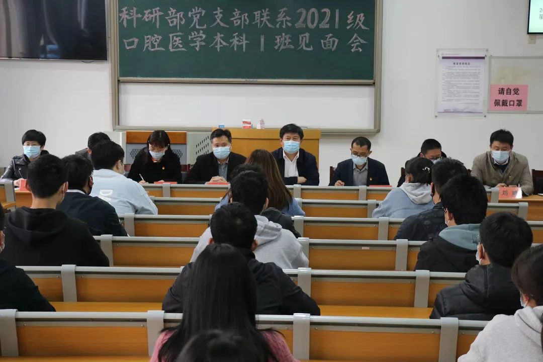 3月16日,校(院)党委委员、副校(院)长张福仁与所在科研部党支部成员一起,与口腔医学院2021级口腔医学本科1班学生共同开展“领航工程”交流活动。张福仁作了题为《如何从临床实践中发现科学问题、解决科学问题》的报告,分享了自己长期从事皮肤病的临床诊疗、研究和教学工作历程中的所思所悟和经验体会。他讲到,科研的意义在于应用,医学的富矿在临床,解决临床疑惑的过程就是科研。科研和临床是相辅相成、相促相长的,勉励同学们要志存高远,胸怀“国之大者”,坚定理想信念,扎实掌握医学专业知识,救死扶伤践医德,弘扬青春正能量,承担起时代赋予的光荣使命和责任。他要求同学们在疫情防控的关键时期,提高思想政治站位,增强风险意识和底线意识,带头宣传防疫知识,遵守防疫制度,做好自我防护。支部党员围绕如何做好科研、临床工作等方面的问题,与同学们进行了深入互动交流,同学们积极参与、踊跃发言,现场气氛热烈。