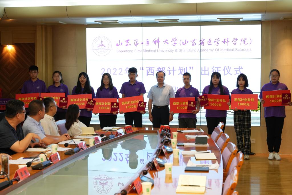 校(院)团委负责同志宣读了《关于授予赵明钰等15名同学“山东第一医科大学(山东省医学科学院)2022年志愿服务西部优秀志愿者”称号的决定》。
