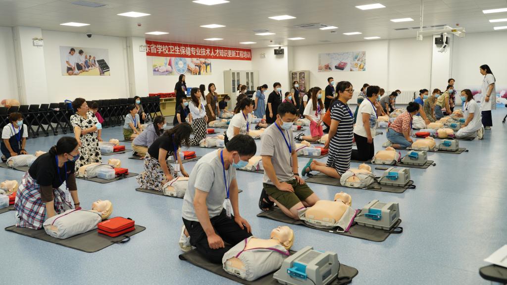 本次培训共分四期,每期学员50人,采取理论讲授和实践操作相结合的形式,邀请附属省立医院(山东省立医院)、附属中心医院(济南市中心医院)、附属眼科医院专家进行授课,并在校(院)医学模拟中心、附属眼科医院分别进行校园急救实践能力、儿童青少年近视防控实践能力提升培训。学员经理论与实操考核,合格可取得中国红十字会心肺复苏(CPR+AED)培训证书。