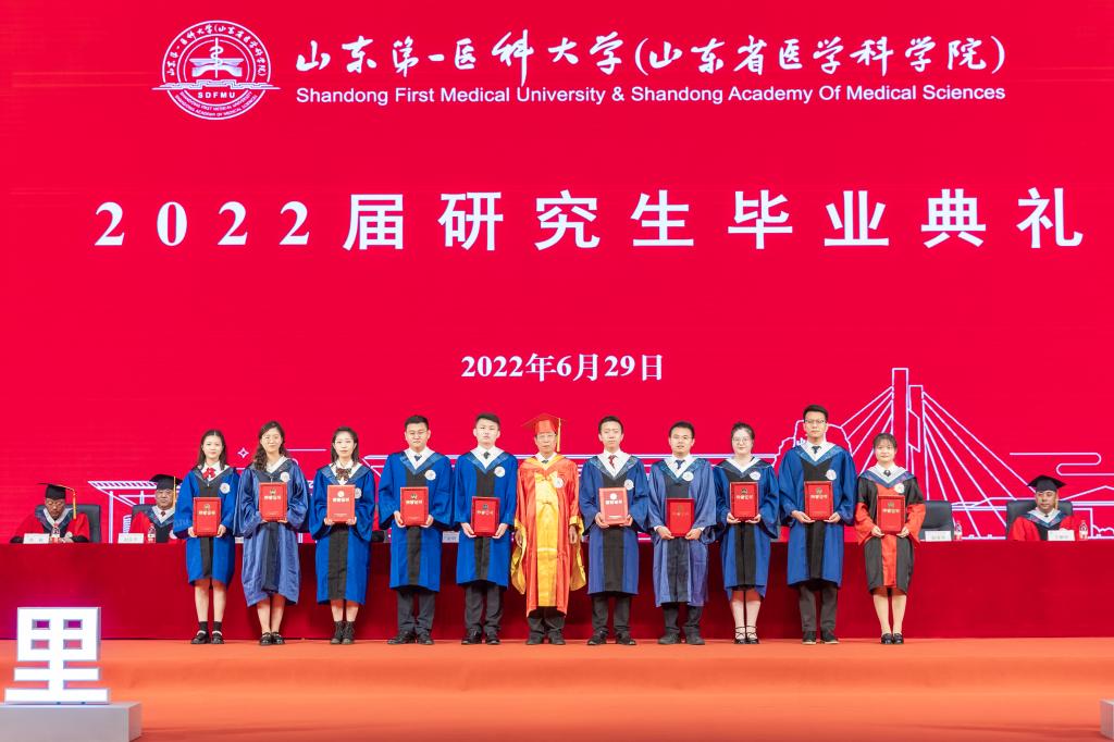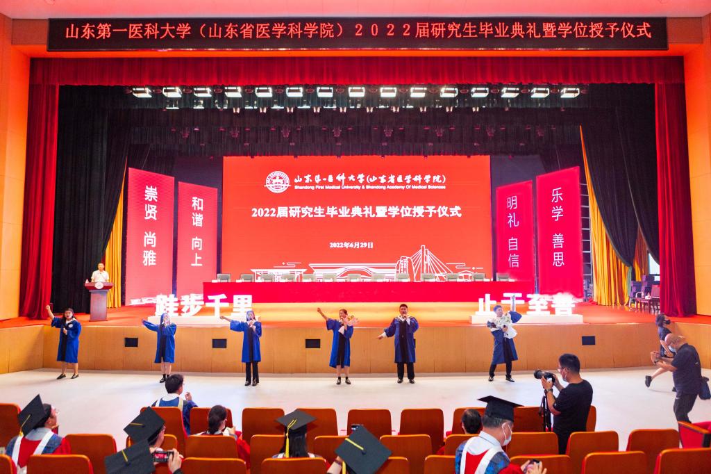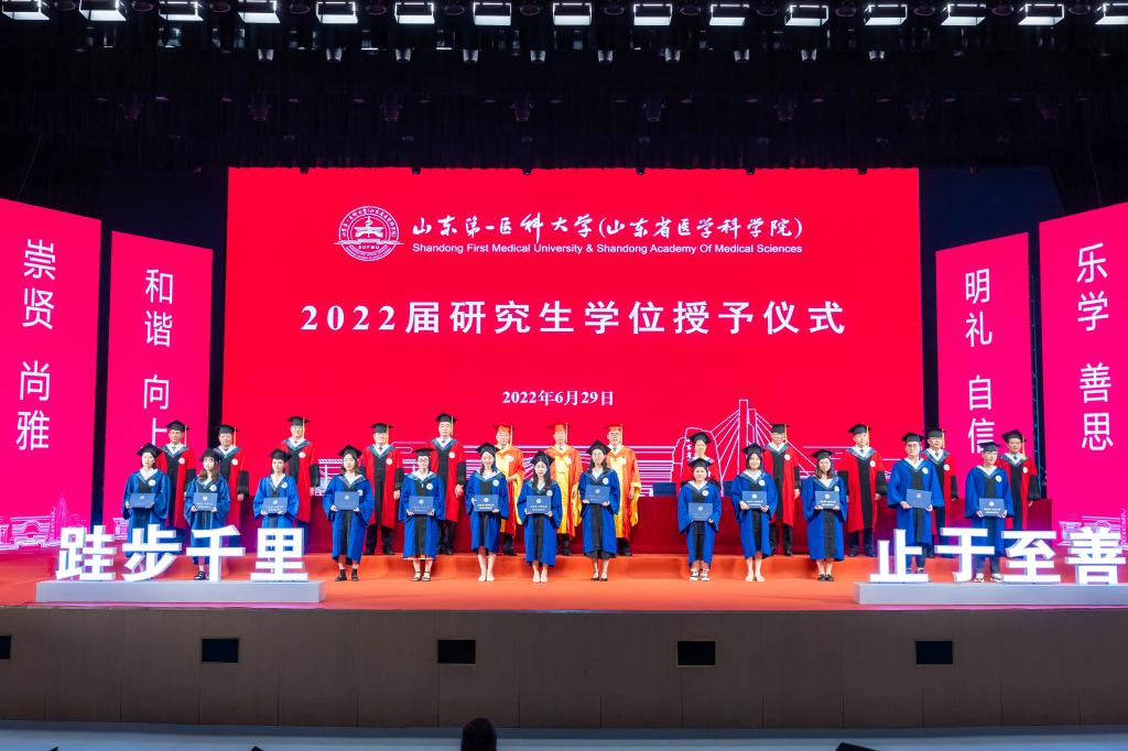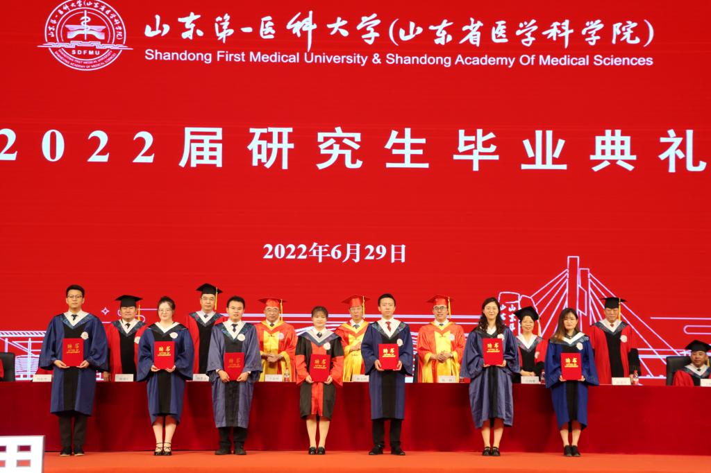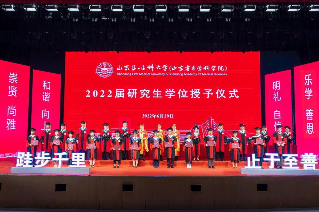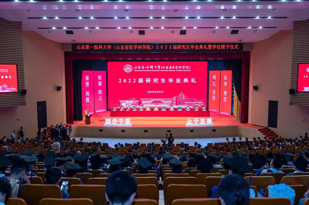 夏节又至,草木葳蕤;重整行囊,逐梦未来。6月29日,山东第一医科大学(山东省医学科学院)2022届研究生毕业典礼暨学位授予仪式在济南主校区举行。校(院)领导韩金祥、陆林、于金明、吕晓黎、刘思金、赵家军、张福仁、王鹏程、刘东平、刘传勇、李栋、王宇轩、马鲁豫出席典礼,共同送别2022届博硕士毕业生。副校(院)长赵家军主持典礼。