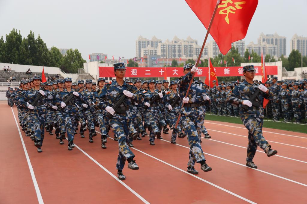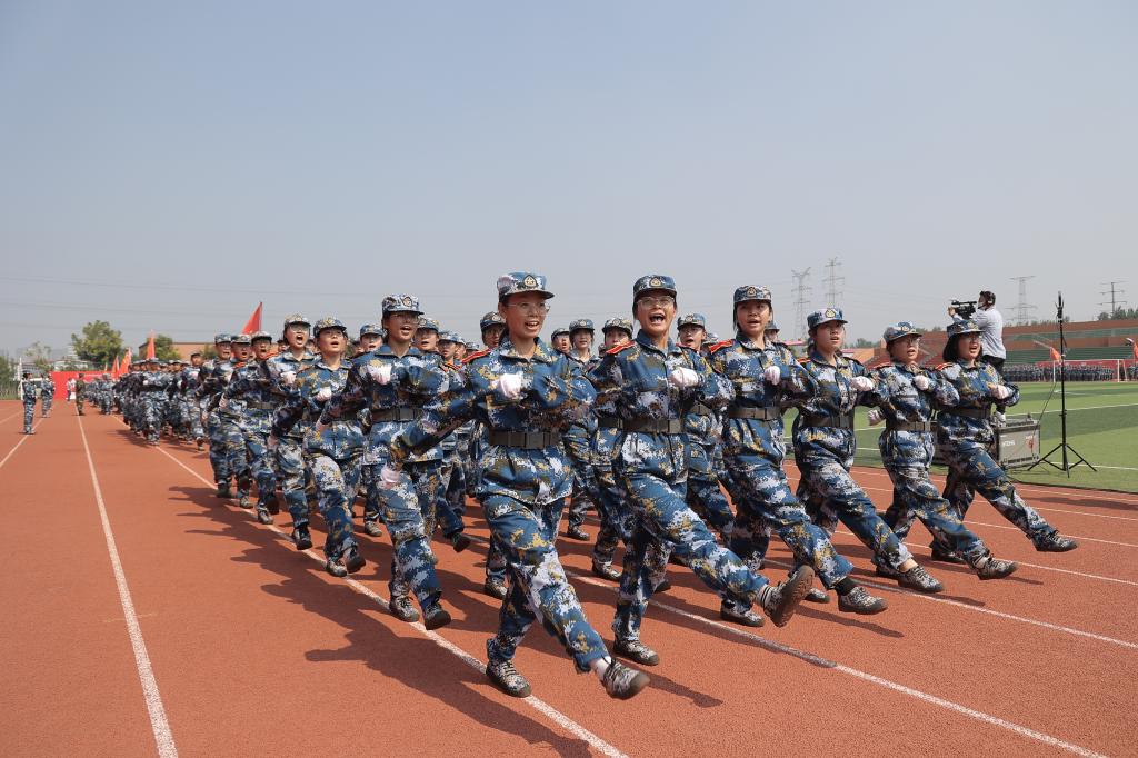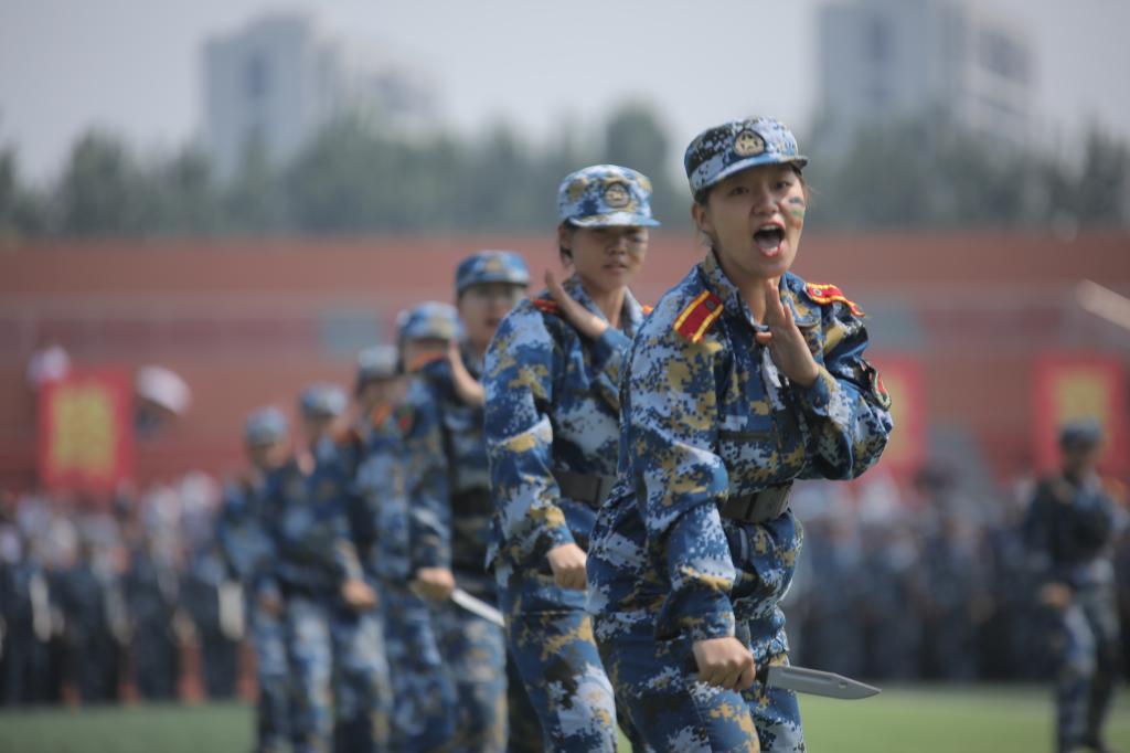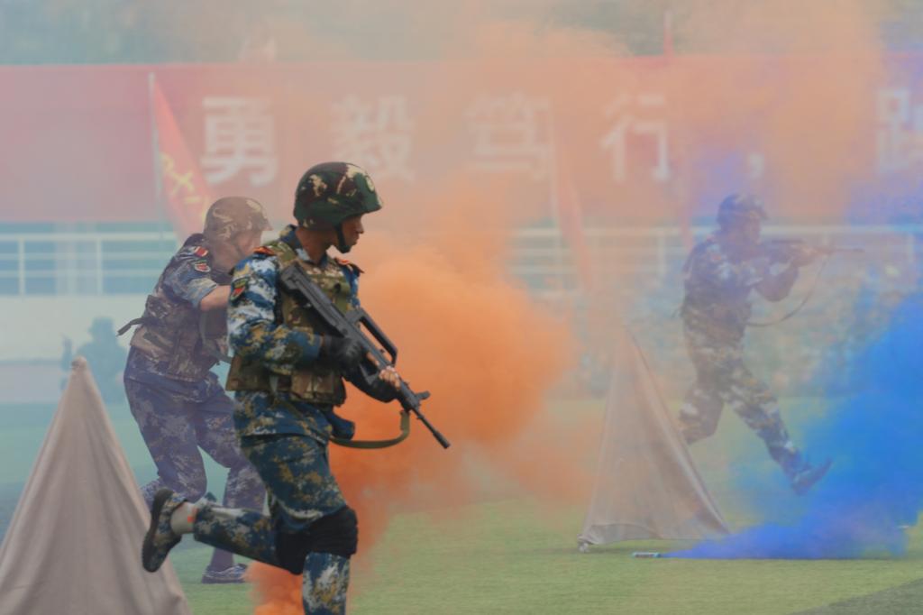 典礼之后,举行了军训汇报表演。以军训团团旗为先导的50余个方队迈着矫健的步伐,带着饱满的热情、高昂的斗志,喊着嘹亮的口号,迈着铿锵有力的步伐依次走过主席台,接受检阅。随后,战术表演方队、匕首操方队、应急棍方队和擒敌拳方队分别进行了科目表演。由400余名新生组成的团体操方队,先后变幻出“喜迎二十大”“爱我山一大”和党徽等字形和图案,展示了传承红色基因、赓续红色血脉的新时代山一大人的青春活力和昂扬风貌。军训汇演进行了网络直播,吸引了160万+人次在线观看。