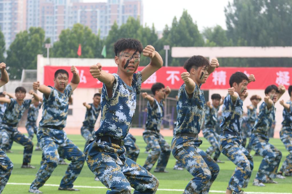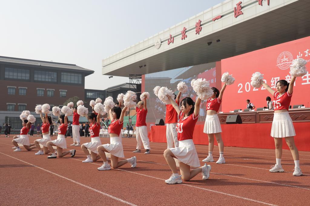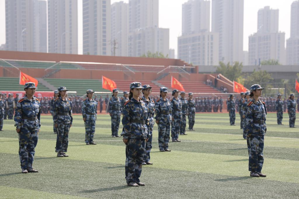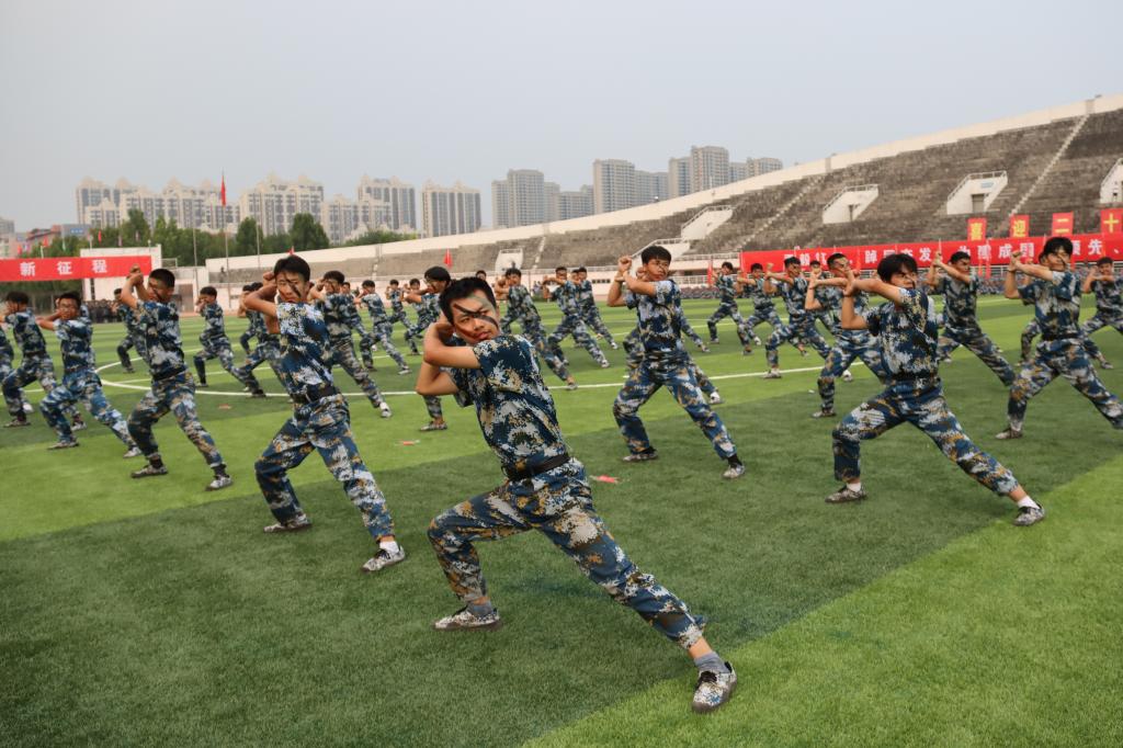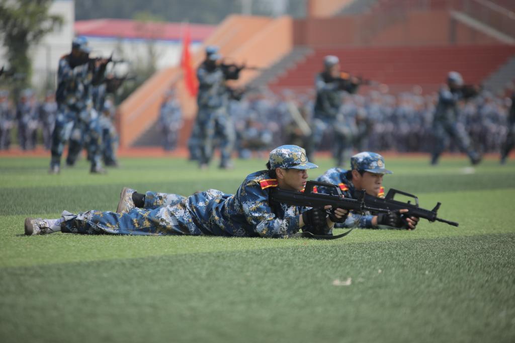 典礼之后,举行了军训汇报表演。以军训团团旗为先导的50余个方队迈着矫健的步伐,带着饱满的热情、高昂的斗志,喊着嘹亮的口号,迈着铿锵有力的步伐依次走过主席台,接受检阅。随后,战术表演方队、匕首操方队、应急棍方队和擒敌拳方队分别进行了科目表演。由400余名新生组成的团体操方队,先后变幻出“喜迎二十大”“爱我山一大”和党徽等字形和图案,展示了传承红色基因、赓续红色血脉的新时代山一大人的青春活力和昂扬风貌。军训汇演进行了网络直播,吸引了160万+人次在线观看。