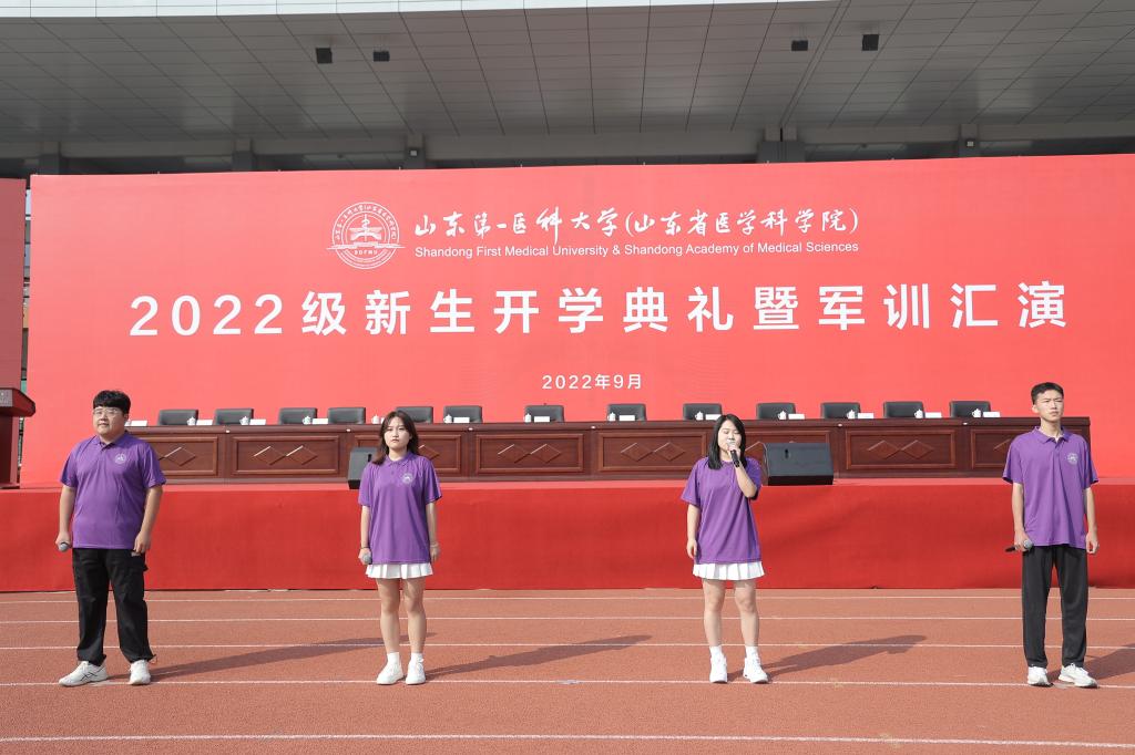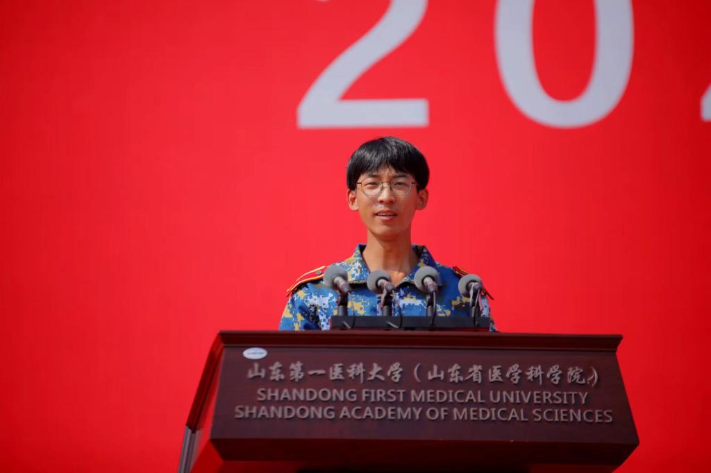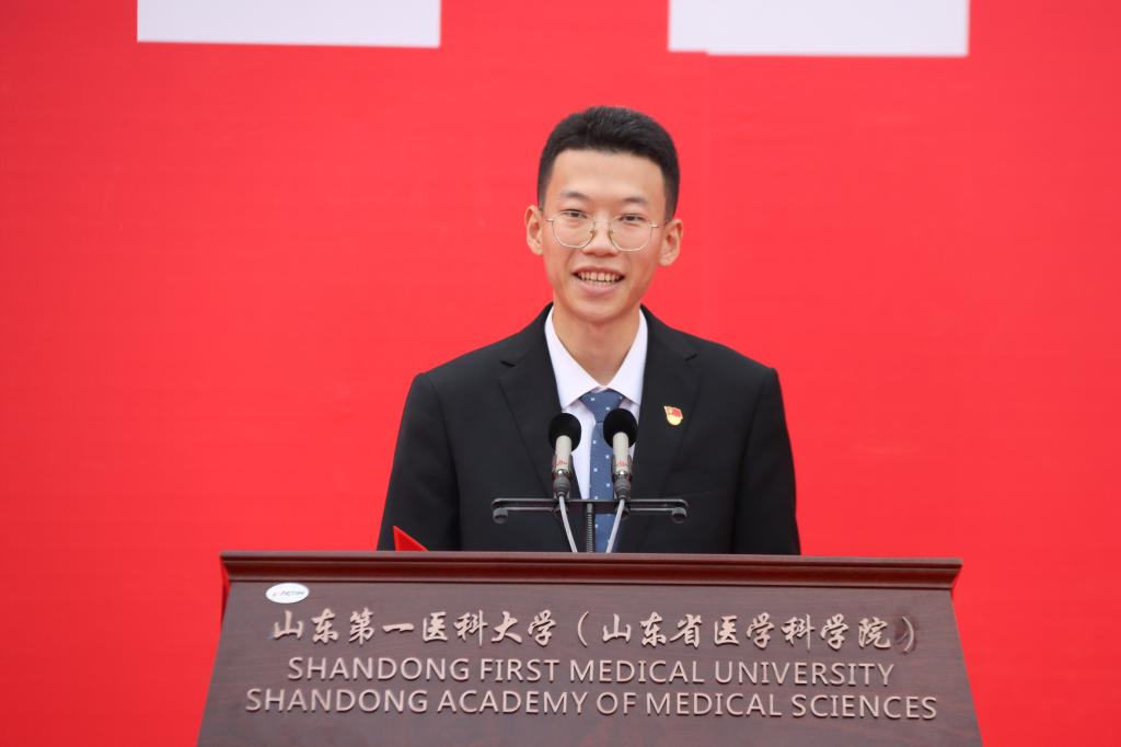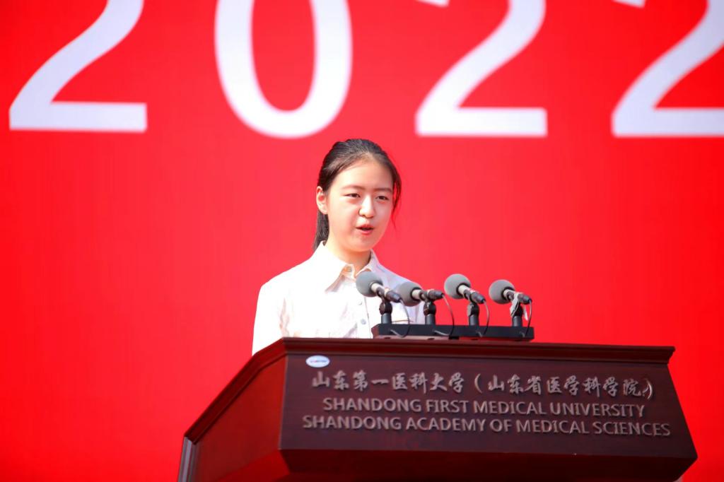 在校生代表2020级临床医学卓越班周奕璇、2019级医学影像学专业燕浩艺,新生代表2022级医学检验技术专业王一皓、药学专业张泽阳分别发言,分享了在山一大求学的经历和体会,表达了对大学生活的无限憧憬。