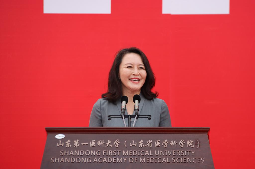 优秀校友代表、济南市妇幼保健院院长聂文英教授回顾了在母校求学的美好回忆,希望学弟学妹们以执著地热爱,不断地开始,永恒地坚持燃烧无悔青春。教师代表、生命科学学院郭淼教授表达了对新同学的衷心祝福,希望大家珍惜情感、珍惜时间、珍惜机会、珍惜生在这个伟大的国度和时代,努力成为行业翘楚、社会栋梁。