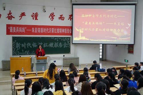 4月23日,“最美兵妈妈”---沂蒙新红嫂朱呈镕来校访问,并为泰安校区师生做沂蒙新红嫂先进事迹报告。