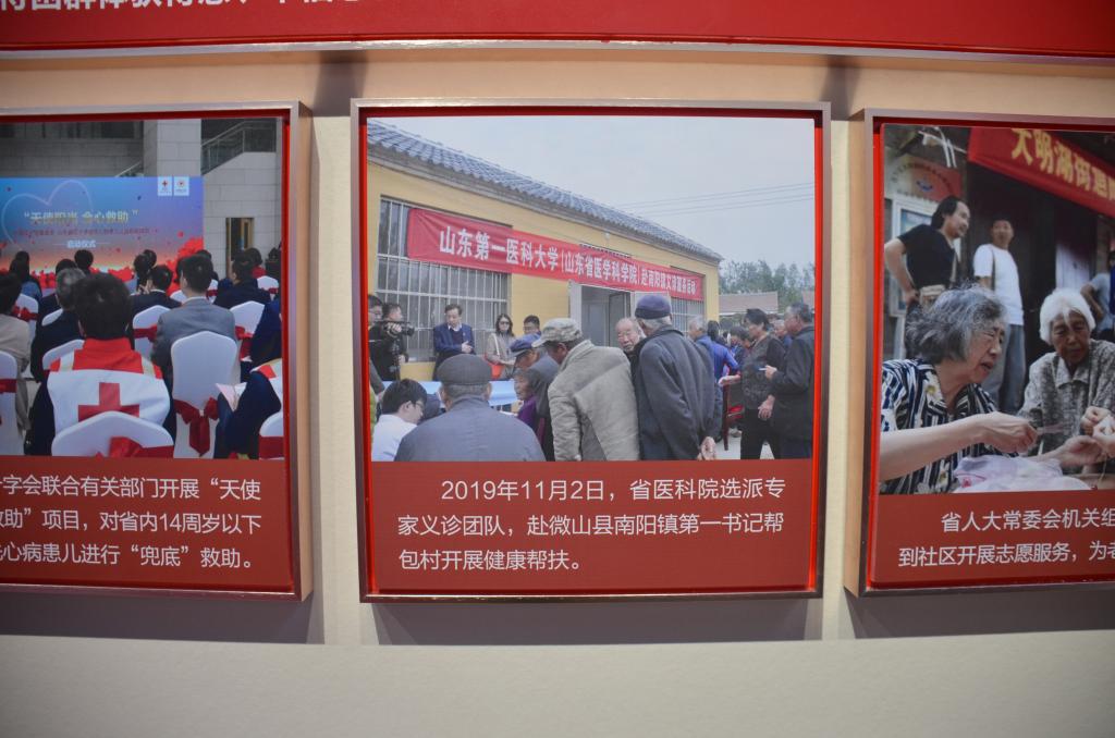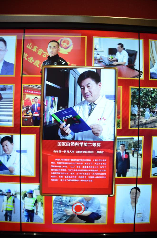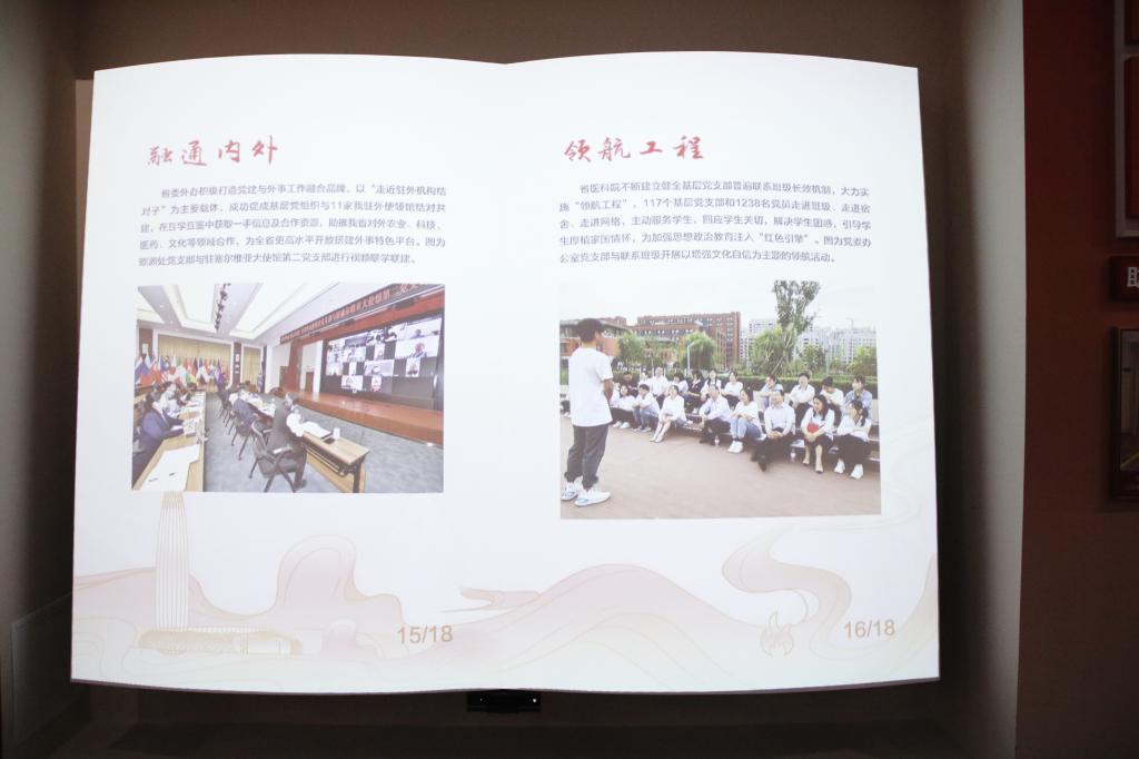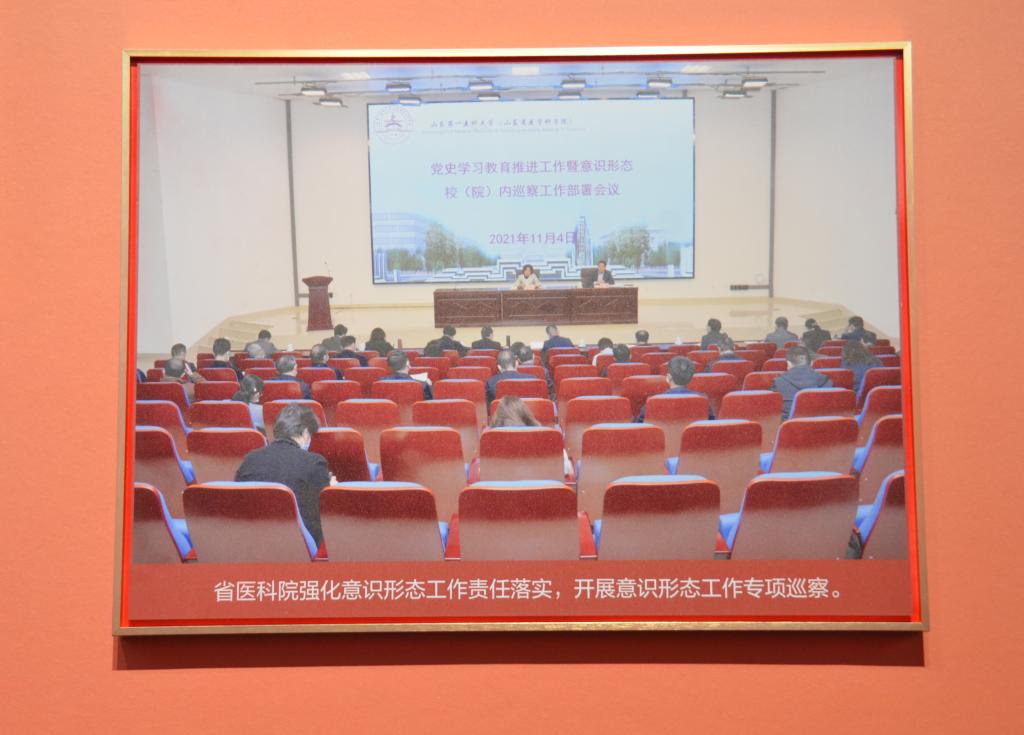 校(院)多项党建成果亮相展览:基层党支部联系学生班级“领航工程”入选为党建与业务工作深度融合典型案例;校(院)党建成果专题片《党建引领 科教融合 助推健康山东建设》、意识形态工作专项巡察、第一书记帮包村健康义诊活动,以及齐鲁时代楷模白晓卉,校(院)国家级科技奖励获得者、全国先进工作者、全国抗击新冠肺炎疫情先进个人、全国最美家庭等先进榜样事迹展陈,令人深受教育,吸引大家驻足观看。