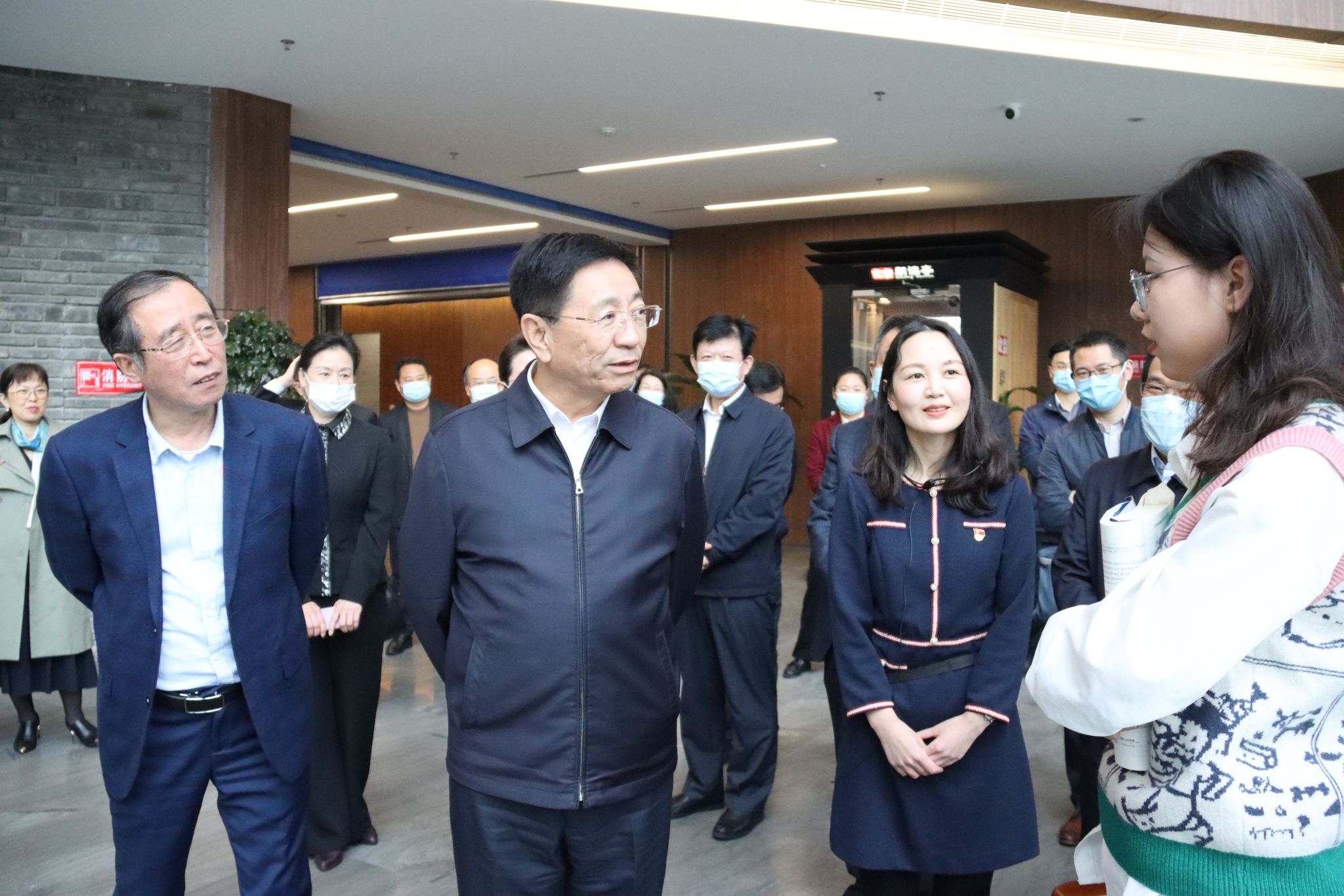 开馆仪式结束后,白玉刚一行参观了黄河图书馆,并与学生亲切交流,询问其学习、生活情况。