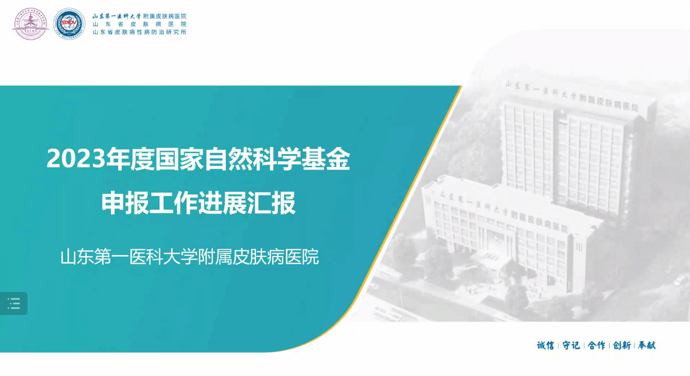 会议邀请浙江大学医学院皮肤性病学学位点负责人、浙江大学第二医院皮肤科主任满孝勇教授,山东第一医科大学临床与基础医学院副院长、第一附属医院麻醉与围术期医学科主任王月兰教授分别作了《国家自然科学基金申报注意事项》《人生在勤 不索何获——国基金申报一点体会》的学术报告。