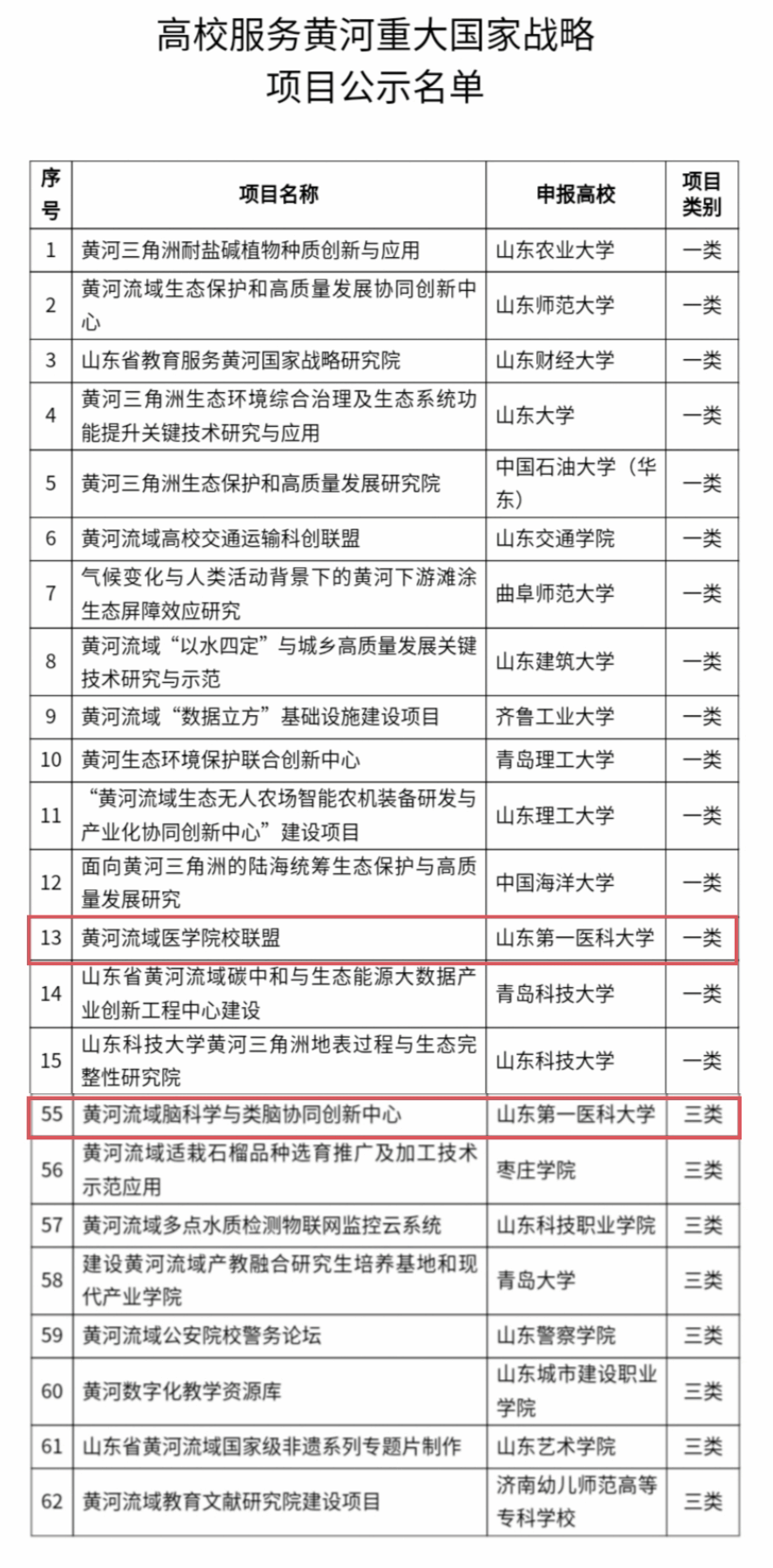 近日,山东省教育厅发布《关于公布高等学校服务黄河重大国家战略特色项目评选结果的通知》,校(院)2个项目入选。其中,“黄河流域医学院校联盟”项目获批一类项目;“黄河流域脑科学与类脑协同创新中心”项目获批三类项目。