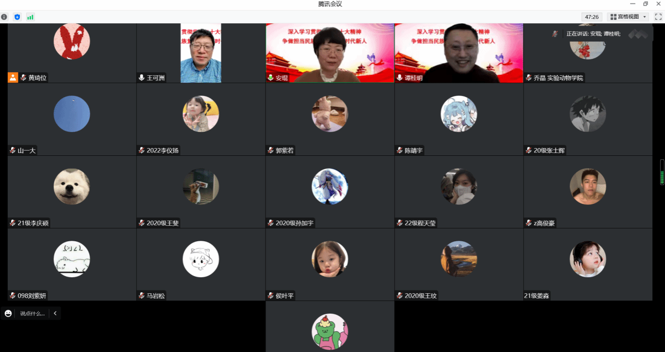 校(院)党委委员、组织部部长安琨为实验动物学院学生作了题为《深入学习贯彻党的二十大精神 争做担当民族复兴大任的时代新人》的宣讲报告,从党的二十大召开的时代背景、基本框架以及党的二十大报告的亮点等方面向同学们详细讲解了党的二十大报告的主要精神,鼓励同学们踔厉奋发,笃行不怠,在青春的赛道上“怀抱梦想又脚踏实地,敢想敢为又善作善成,立志做有理想、敢担当、能吃苦、肯奋斗”的时代新青年。