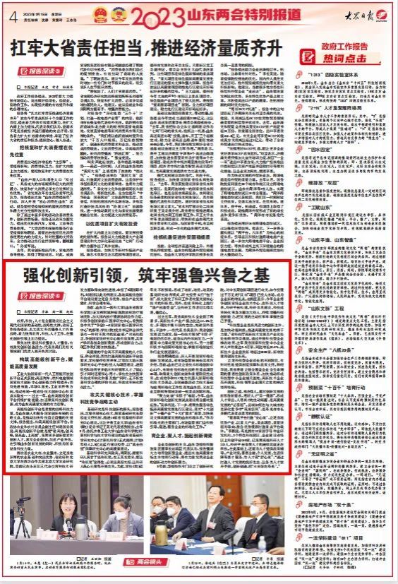 2023年1月,山东省十四届人大一次会议、山东省政协十三届一次会议隆重开幕。校(院)11位新一届省人大代表、省政协委员肩负重托,立足校(院)发展实际,着眼于山东经济社会发展大局,发挥自身优势,积极建言献策,向大会提交了质量高、针对性强的提案、建议,展现了校(院)代表委员良好的精神风貌和参政议政能力。其中,多家媒体围绕省政府工作报告内容,对校(院)多位省人大代表、省政协委员进行专题访谈。一起跟随媒体的镜头,近距离感受省两会代表委员风采。