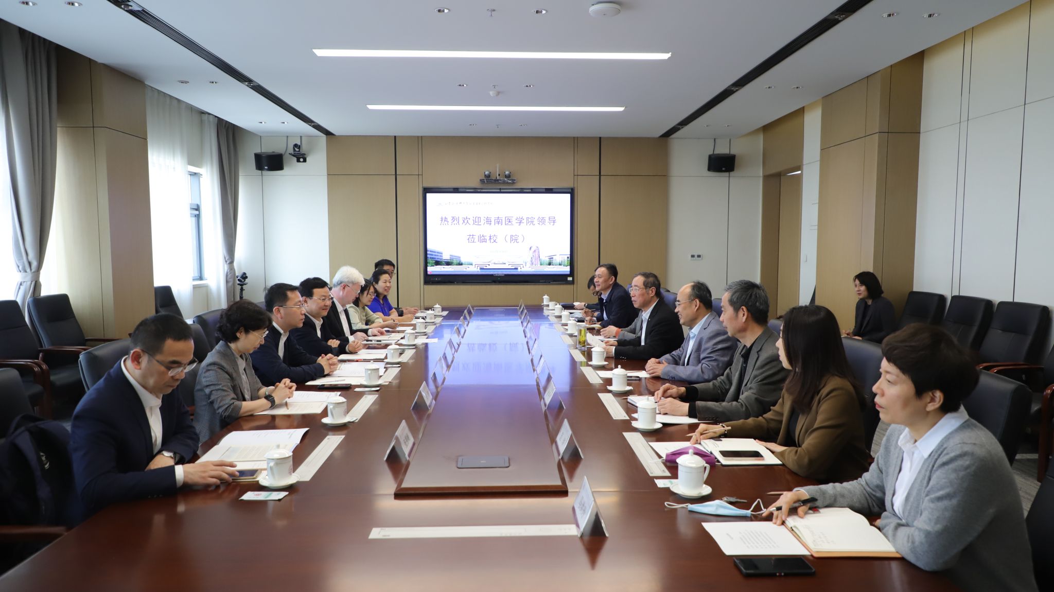 3月8日,海南医学院院长赵建农、副院长马志健一行来校(院)调研,并进行座谈交流。党委书记韩金祥出席并主持座谈会,党委副书记吴向东陪同前往附属省立医院考察交流,副校(院)长刘传勇出席座谈会。