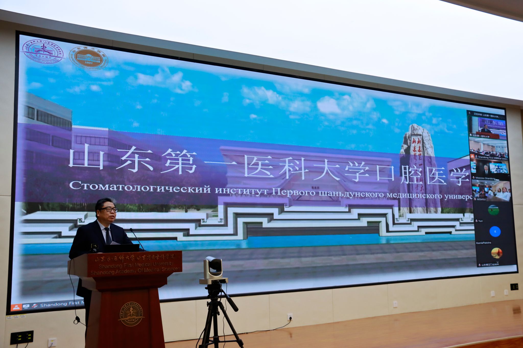 3月17日,山东第一医科大学与莫斯科国立口腔医科大学召开口腔医学学术研讨会。校(院)党委副书记刘思金、莫斯科国立口腔医科大学副校长Andrew Zaborovsky出席会议并致辞。