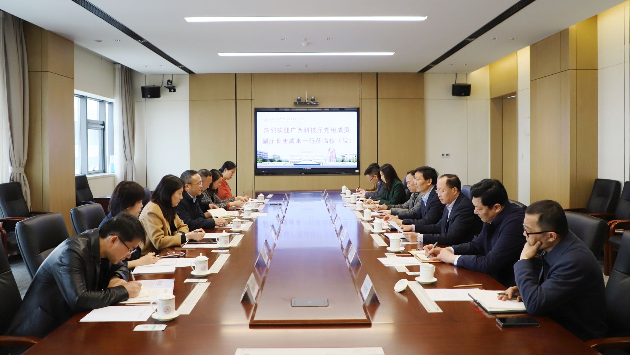 3月8日,广西壮族自治区科技厅党组成员、副厅长唐咸来一行来校(院)调研,并进行座谈交流。校(院)党委副书记吴向东主持座谈会,党委委员、副校(院)长李栋出席。