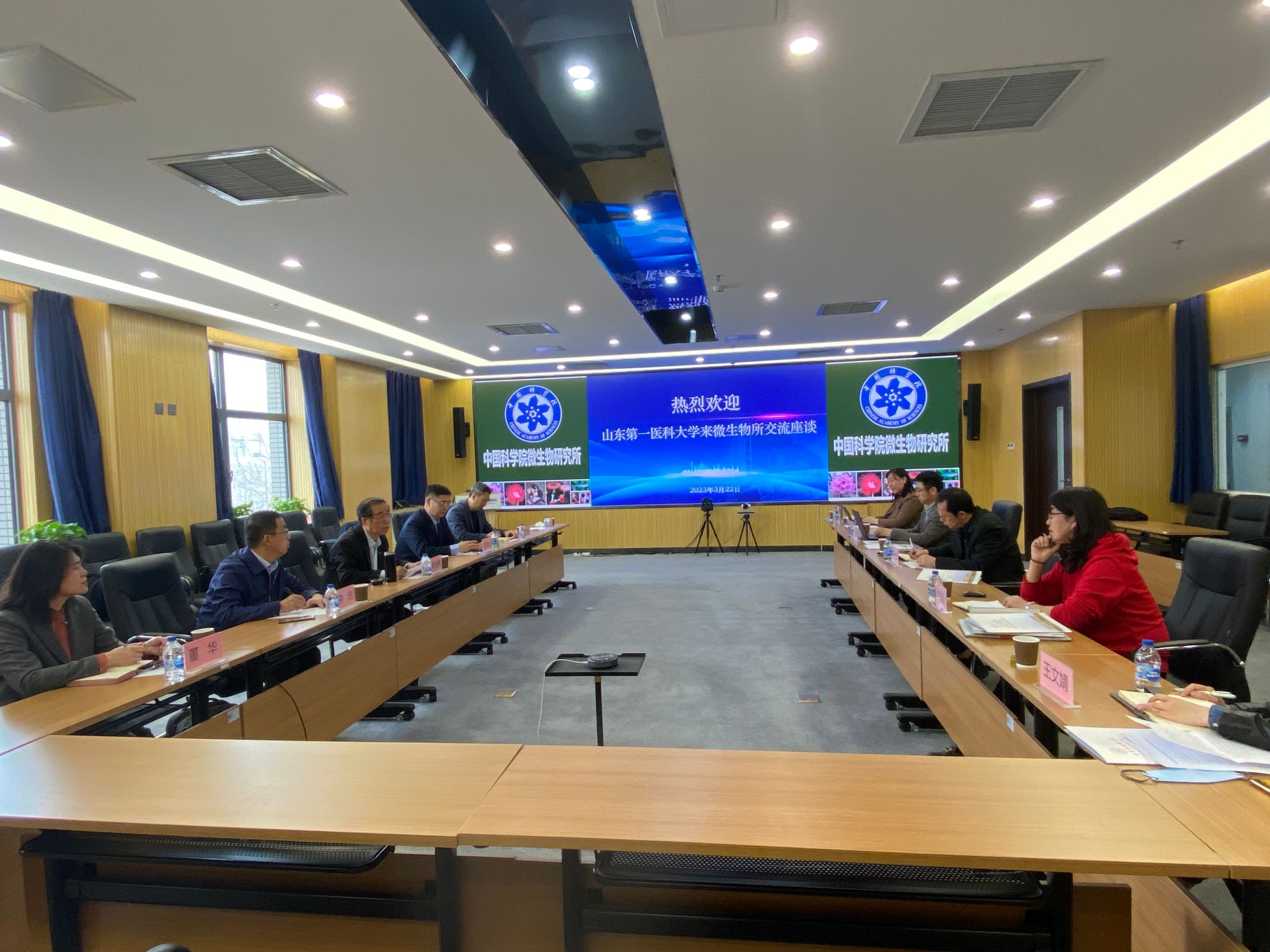 在中科院微生物研究所,韩金祥一行在研究所所长钱韦陪同下参观了实验室,并召开座谈会。双方围绕前期战略合作事项落实情况进行了深入探讨,希望进一步加强硕士研究生联合培养、年轻教师互访等工作,强化实质性交流合作,共同推进能够引领未来医学发展的高层次医学人才培养。