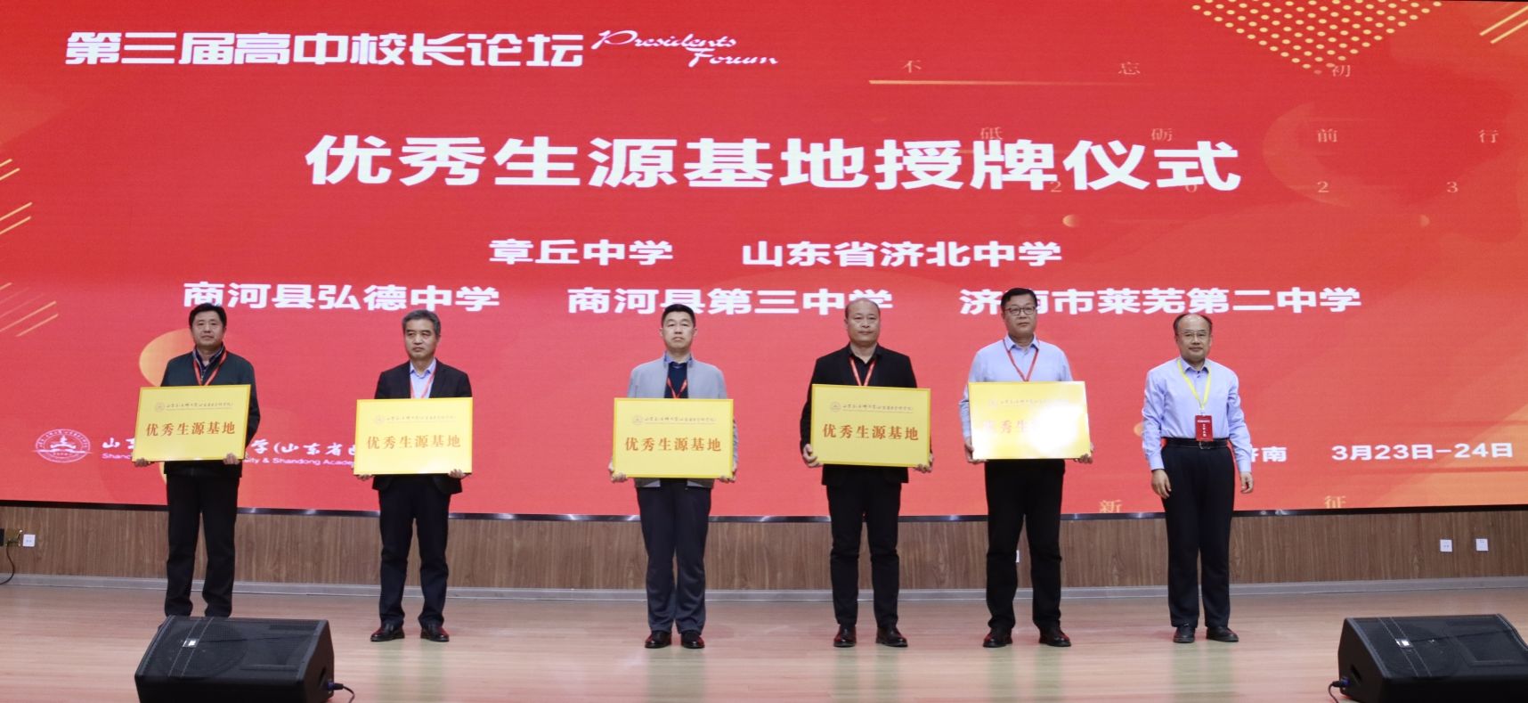 本次论坛为威海市实验高级中学、乳山市第一中学、曲阜市第一中学、嘉祥县第一中学等35所高中授牌优秀生源基地,希望高中高校共同发力,为教育事业发展贡献更多力量。