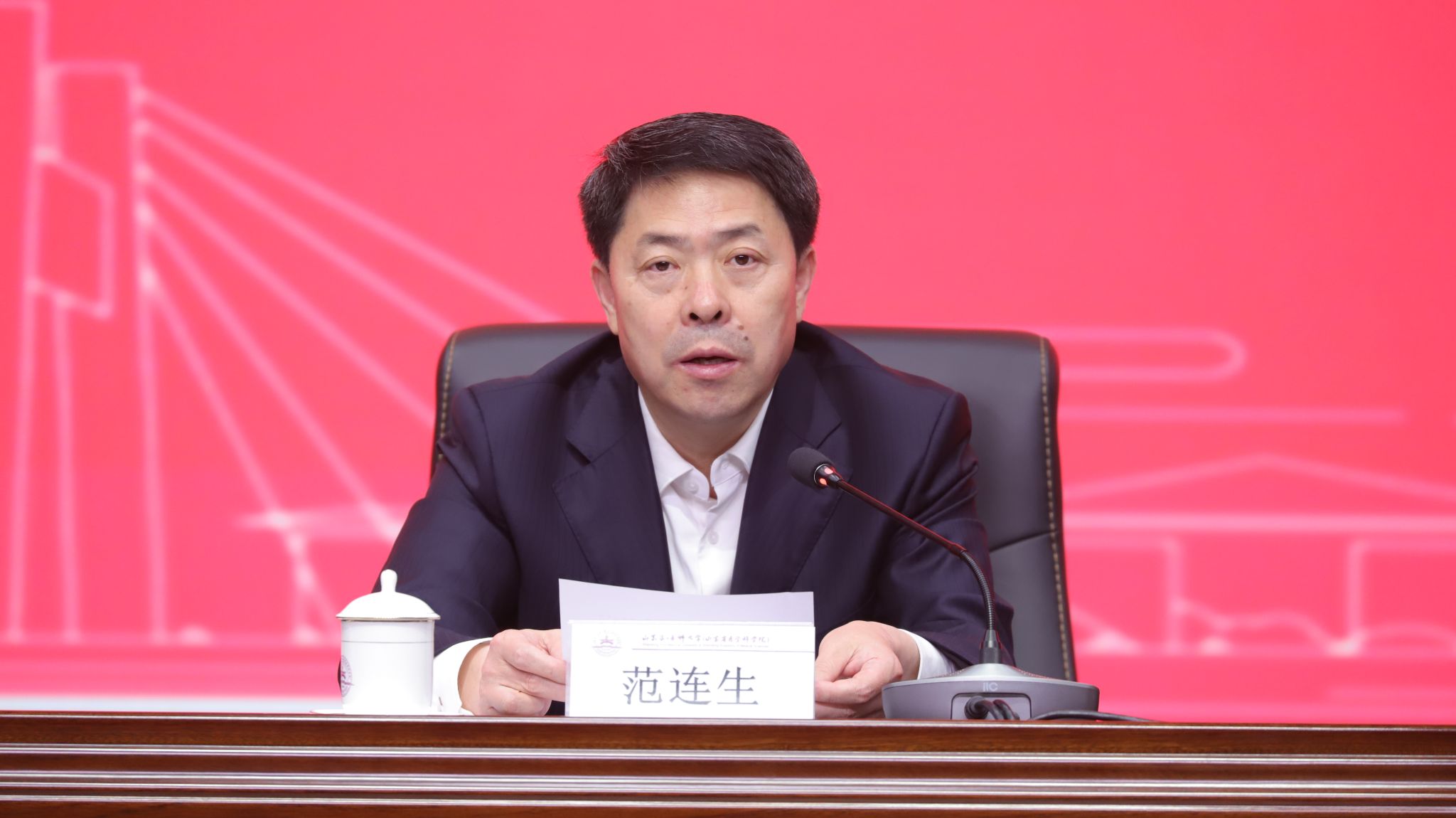 4月14日,校(院)学习贯彻习近平新时代中国特色社会主义思想主题教育工作会议在济南主校区召开。省委第二十一巡回指导组组长范连生到会作指导讲话,校(院)党委书记韩金祥主持会议并讲话。