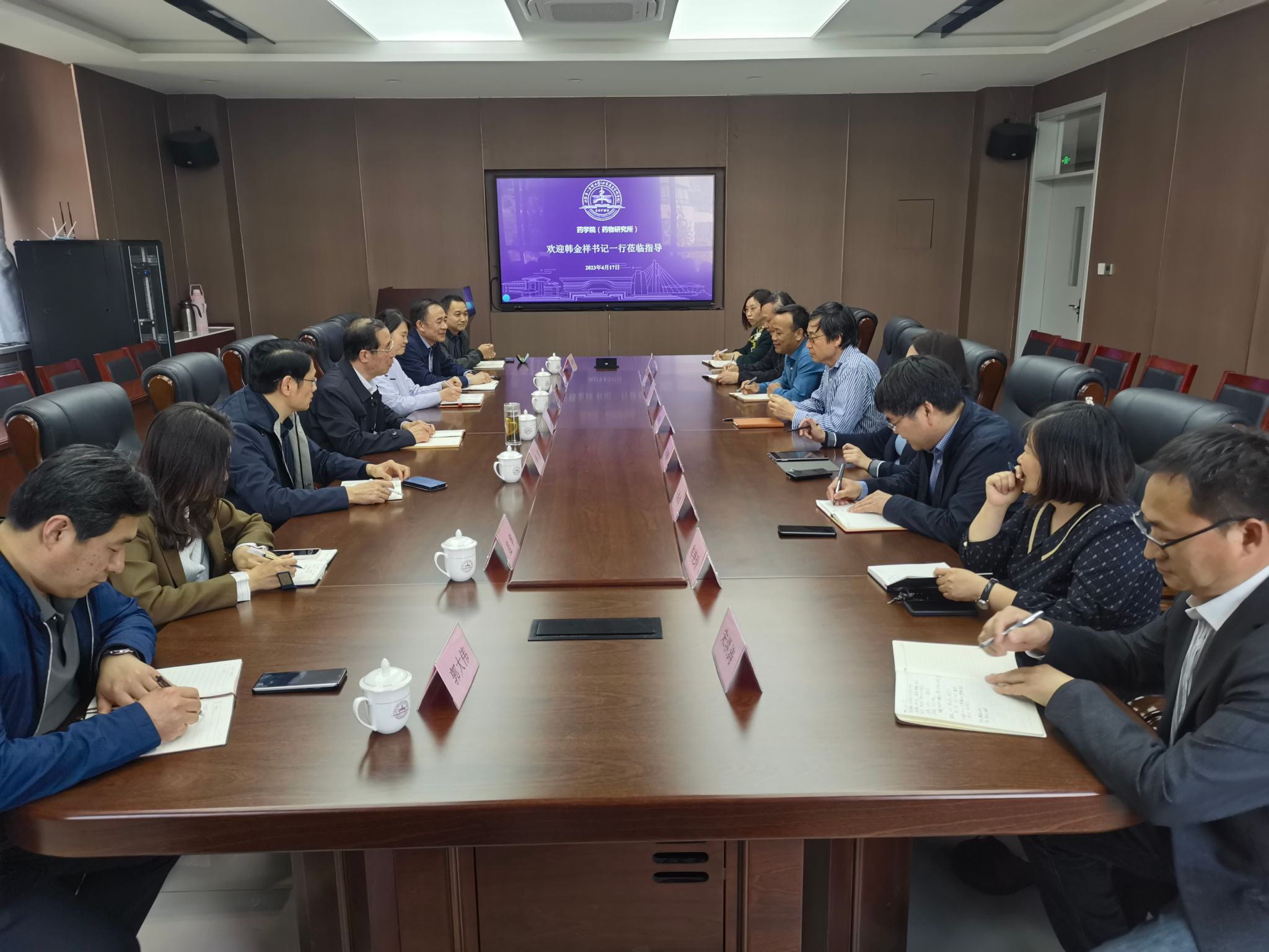 4月17日,校(院)党委书记韩金祥到药学院(药物研究所)就深入开展学习贯彻习近平新时代中国特色社会主义思想主题教育,加快推进学院融合,全力建设高水平药学学科开展专题调研,并召开座谈会。