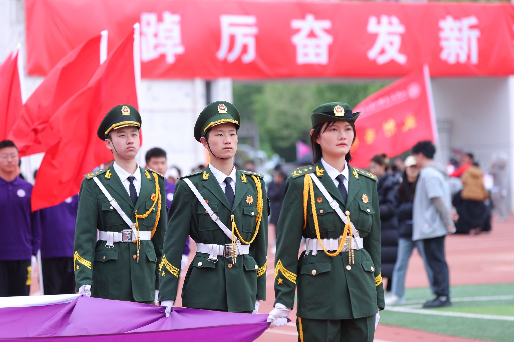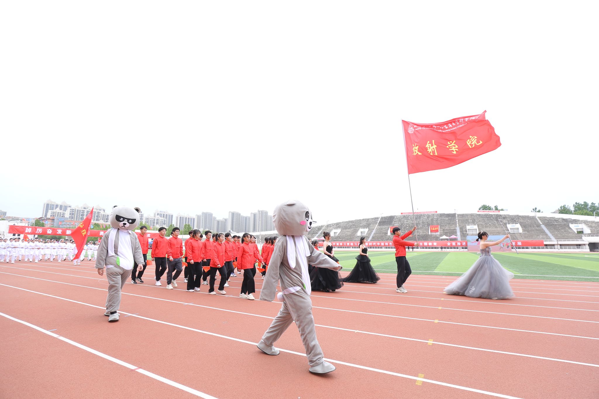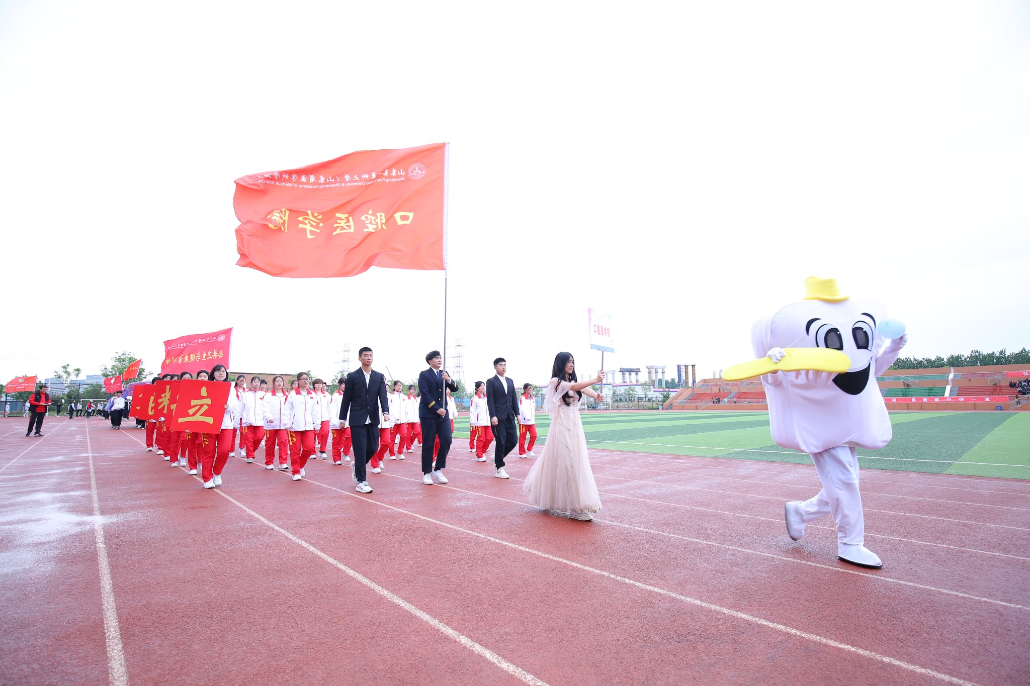 开幕式上,伴随着激昂的《运动员进行曲》,国旗护卫队、校旗队、仪仗队、各教职医护员工及学生代表队,步伐坚定有力,口号气势如虹,排着整齐的队列依次入场。常鹏丽老师、李俊霖同学分别代表裁判员、运动员宣誓。
