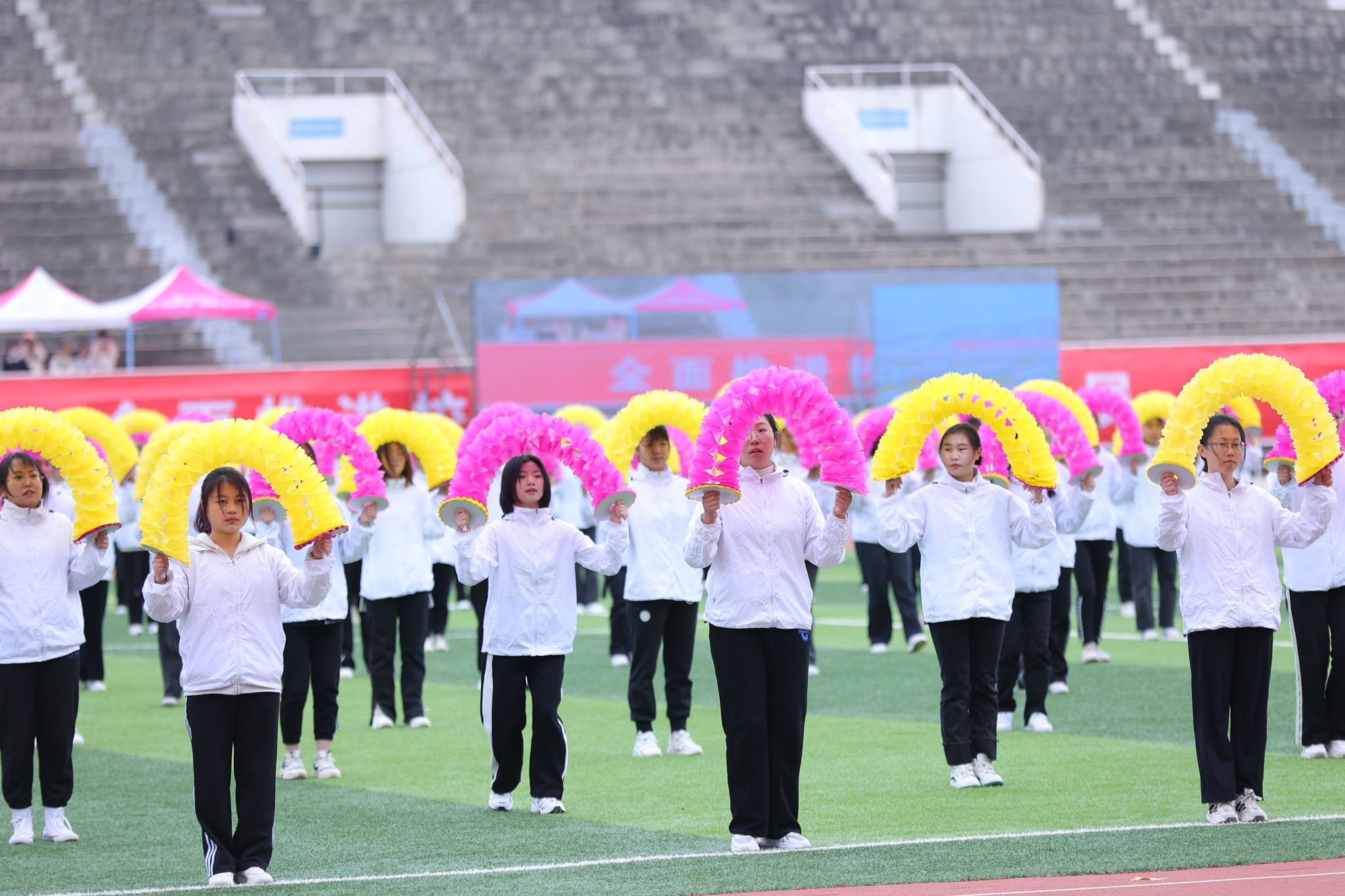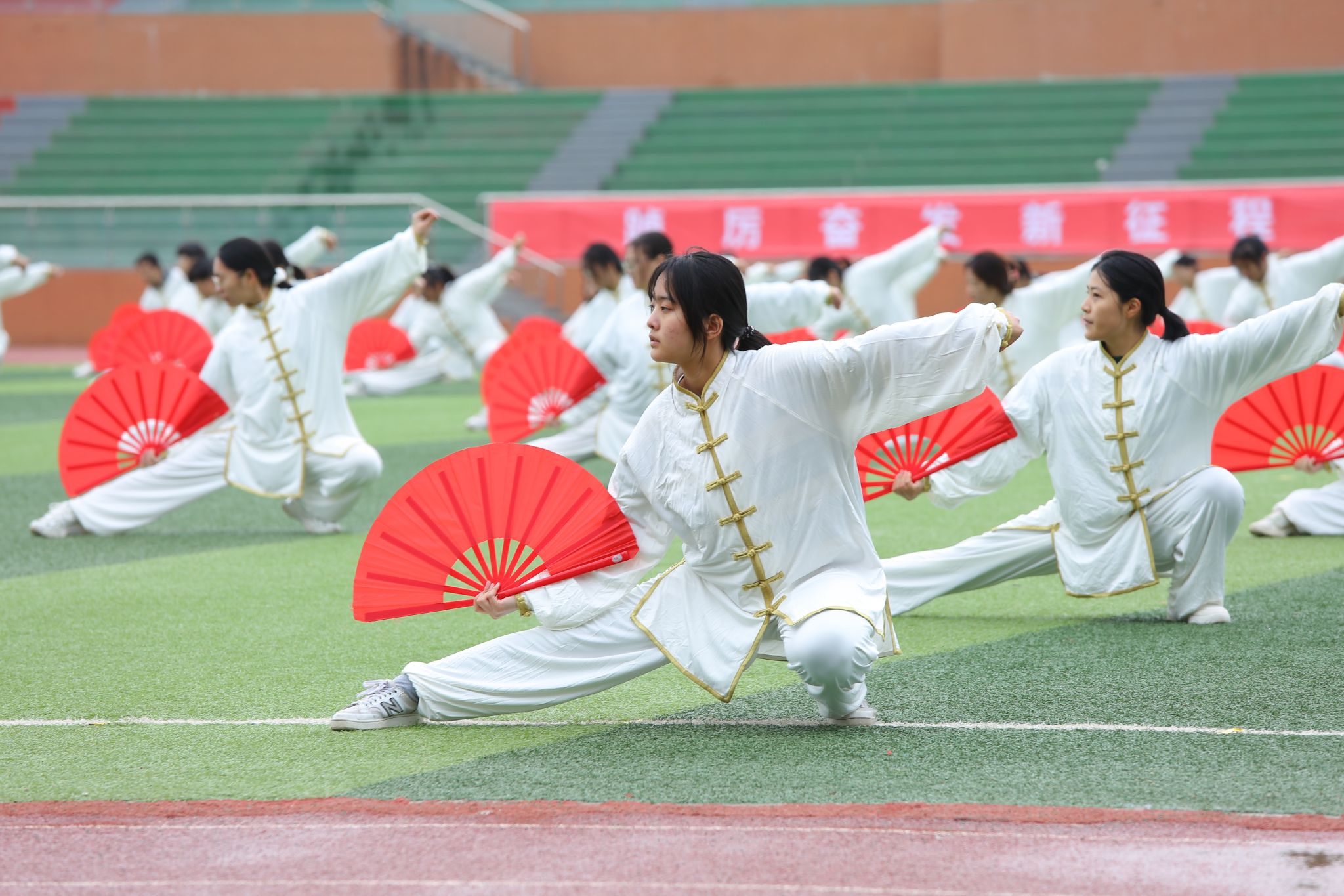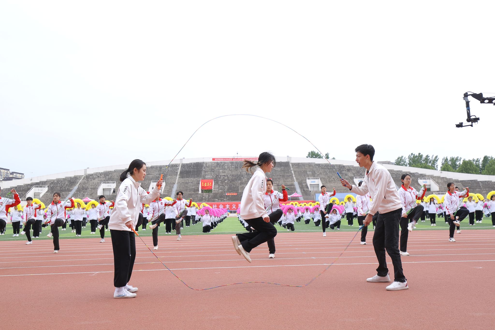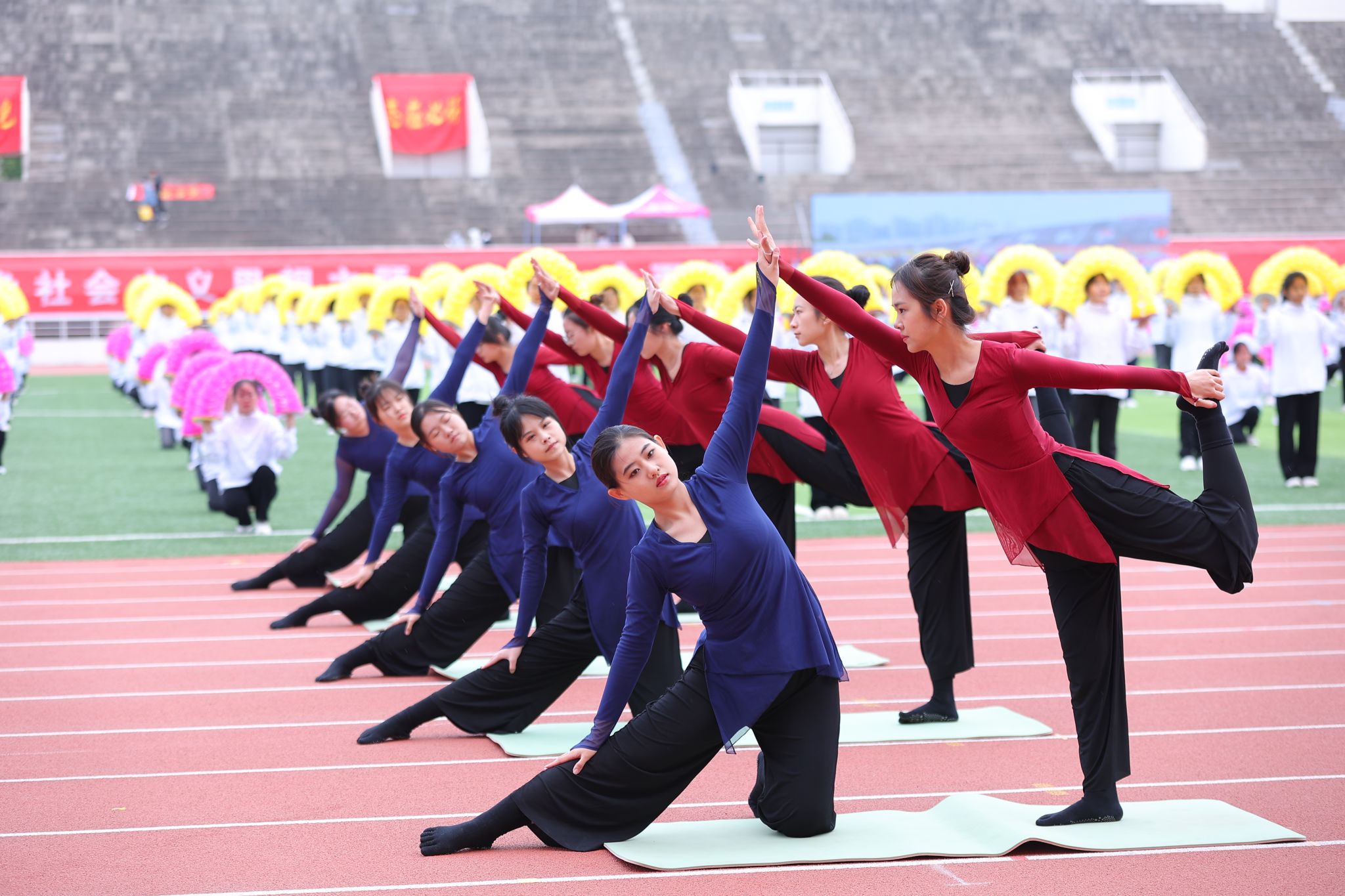 表演项目精彩纷呈。舞蹈《绽放》,充分体现校(院)科教融合特色,由校内教职工和附属机构医护员工150人演绎。娴熟轻快的舞姿,尽显山一大人良好精神面貌。啦啦操、团体操、跳绳等表演,配合《我和2035有个约》《奔跑》等动感十足的音乐,摆出“山一大”字样,用整齐划一的动作、灵动抖擞的姿态,展示出山一大学子的青春魅力与活力。300名学生带来的武术太极扇表演,伴随着《中国功夫》的旋律,摆出“I LOVE YOU”“SDFMU”造型,既刚劲有力,又轻灵柔美,充满潇洒飘逸的美感。瑜伽项目在舒缓、温和的体式中,融入优美的舞姿,造型“2023”,将肢体表达与音乐《万疆》紧密结合,带来视觉上的美感;篮球操搭配歌曲《最好的舞台》,表演者跟随篮球变换姿势,引爆篮球魅力。