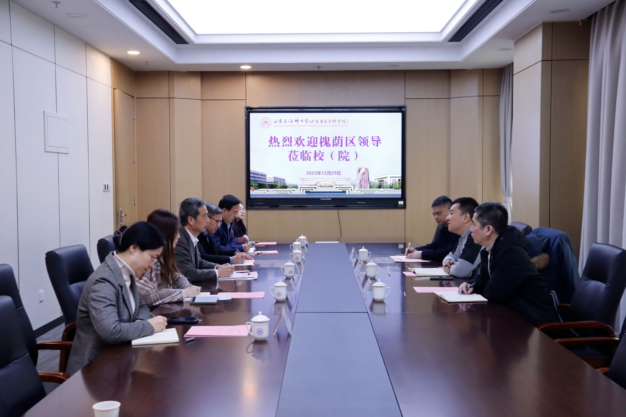 12月29日,槐荫区委统战部副部长、民族宗教事务局局长高胜毅一行到校(院)调研交流。校(院)党委书记刘思金热情会见了客人。