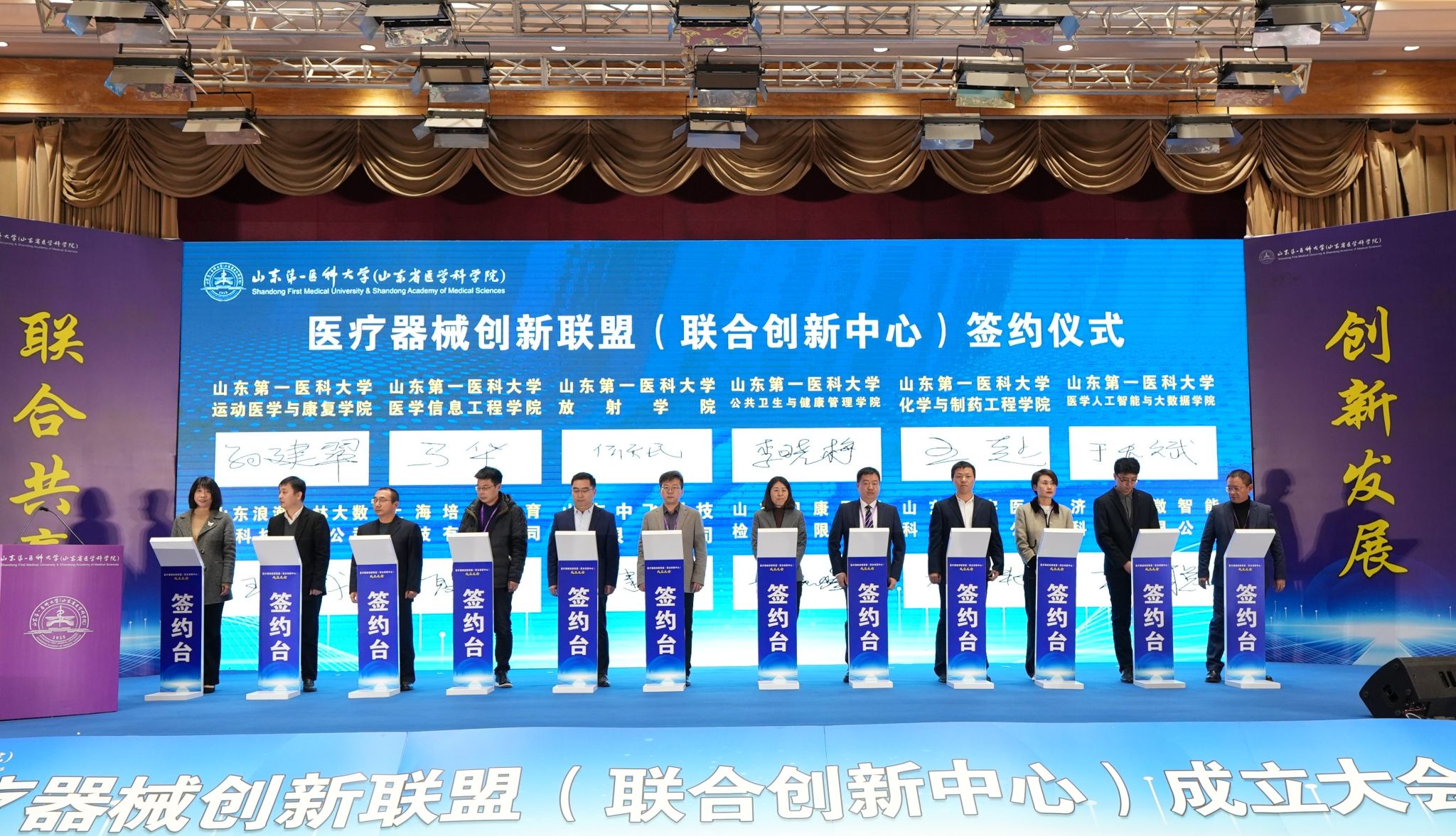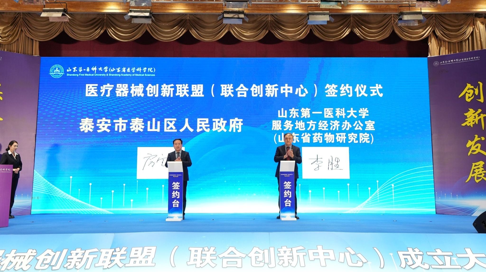 活动中,举办医疗器械创新联盟(联合创新中心)揭牌仪式,校(院)服务地方经济办公室与泰安市泰山区人民政府签署战略合作备忘录,相关学院与18家企业代表签署合作协议。